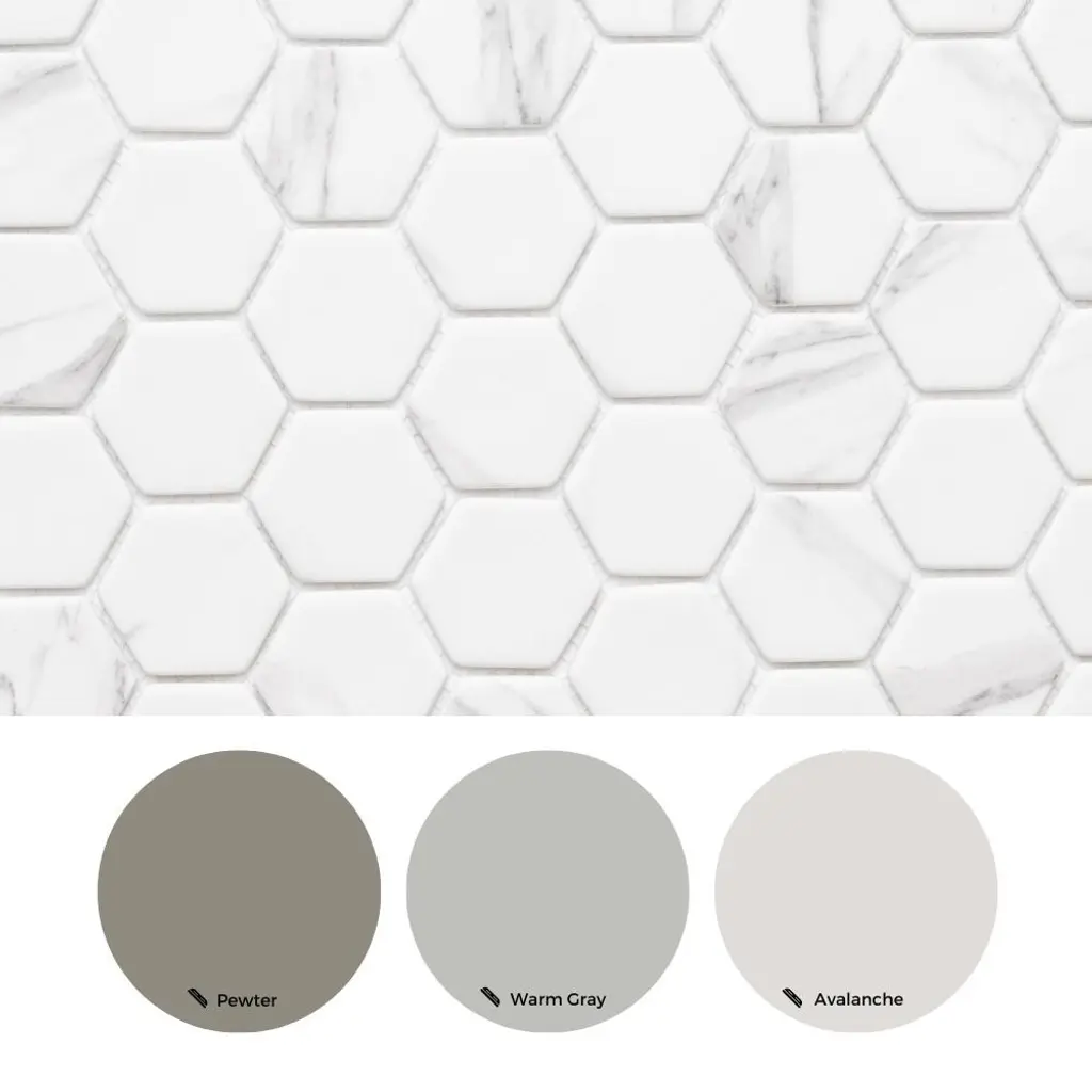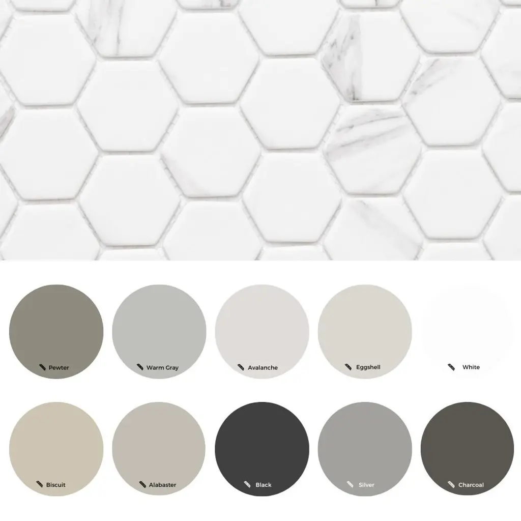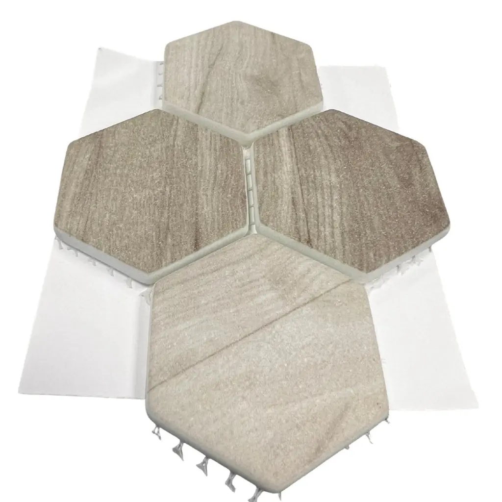 We love this beautiful recycled glass mosaic wall tile. With four eye-catching colors and a natural wood look, this hexagon glass mosaic tile is perfect for your next bathroom renovation! The Tile Life Recycled 2 inches x 2 inches Honeycomb Glass Mosaic Wall Tile features a unique wood grain look in a matte finish, combining eco-friendly design with natural style. Mesh-backed for easy installation and precision cutting, its rectified, straight-edge format is perfect for backsplashes, bathrooms, kitchens, and walls. Approved for residential and commercial indoor use, and available in five earthy tones: Ocean, Grey, Beige, Carrara, and Greige. Each case includes 14 mosaic sheets, covering approximately 15.68 square feet—perfect for kitchens, bathrooms, and accent walls. Each sheet covers 1.12 square feet and features a sample tile size of 4" x 4", making it easy to visualize and plan your layout. FEATURES:DIMENSIONS: