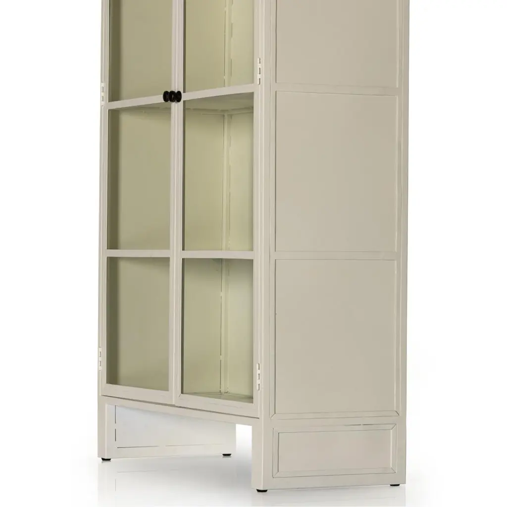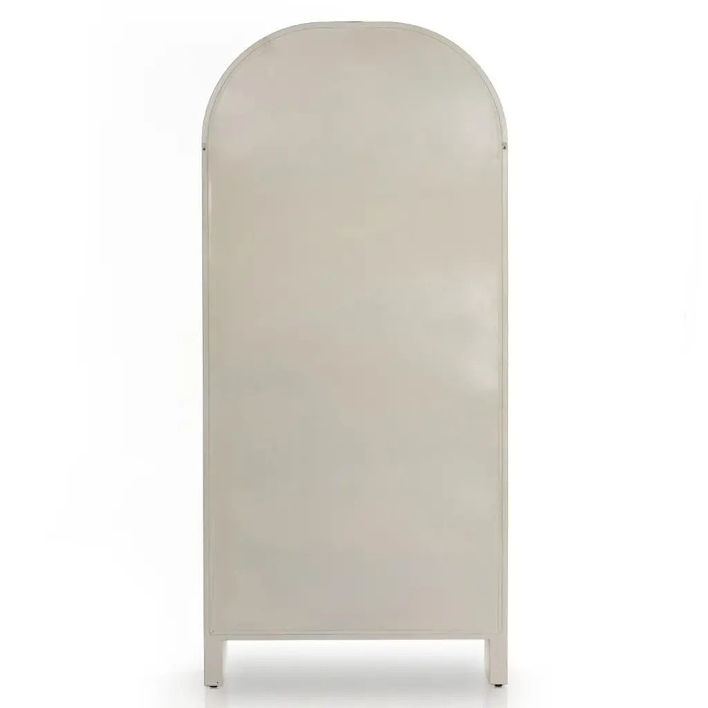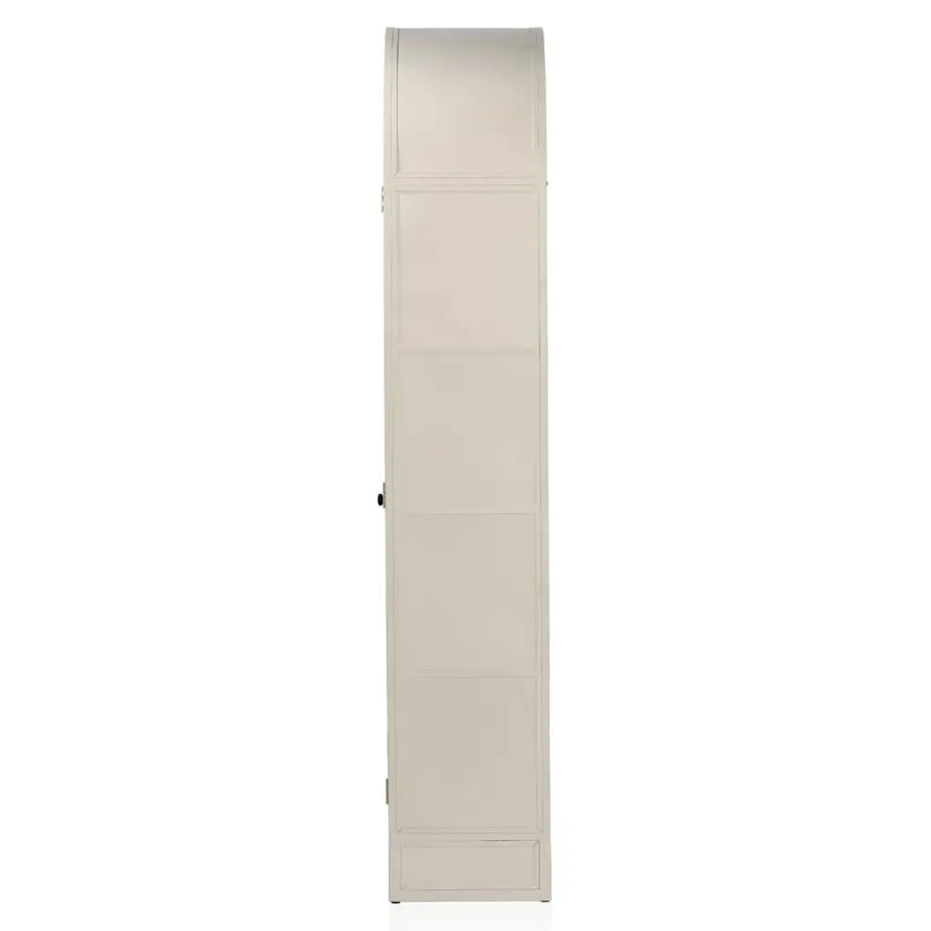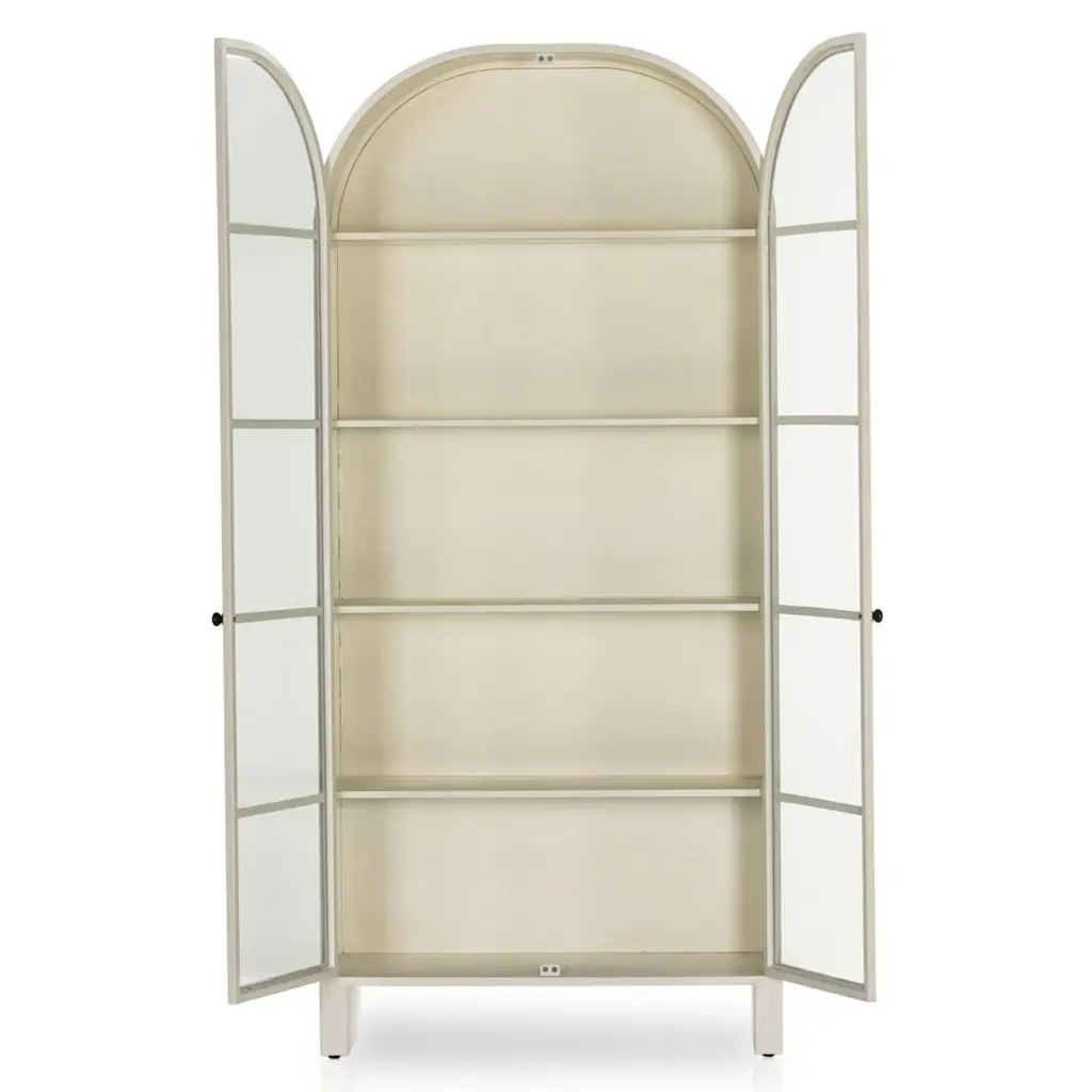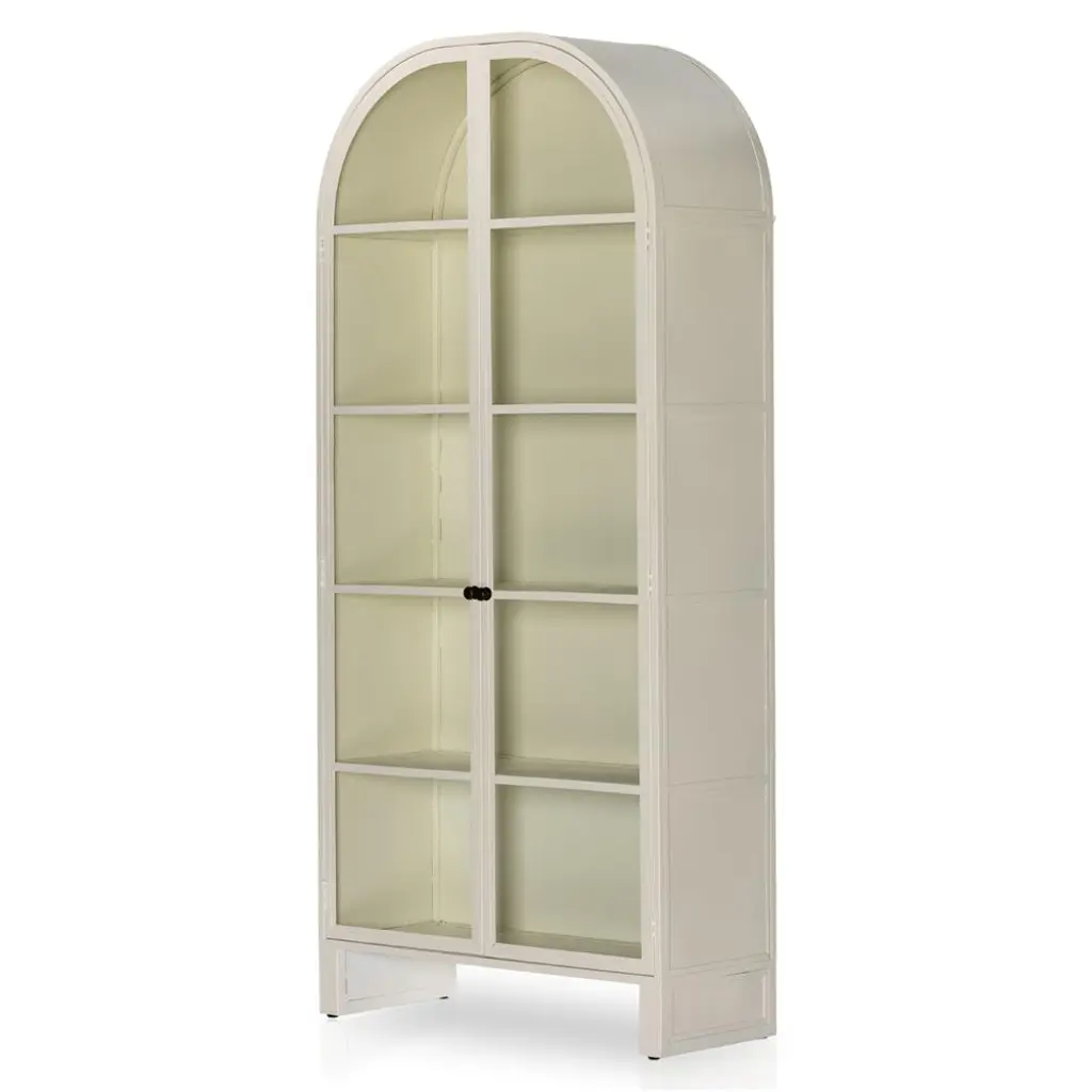 The gorgeous Sheila display case packs a punch wherever it lives, from the dining room to the living room to the bedroom. Made from cream powder-coated iron, this arched cabinet features tempered glass-front doors with magnetic closures. Its five interior sections are begging to be filled with your favorite dinnerware, decorative objects, framed photos, and more.