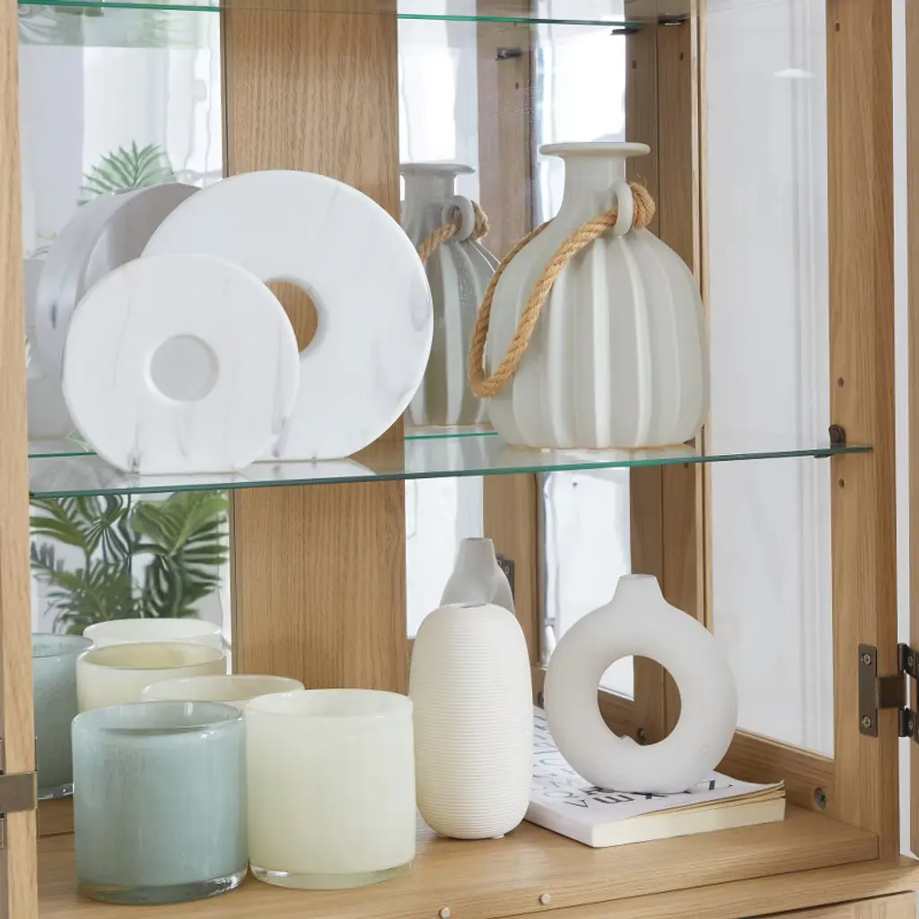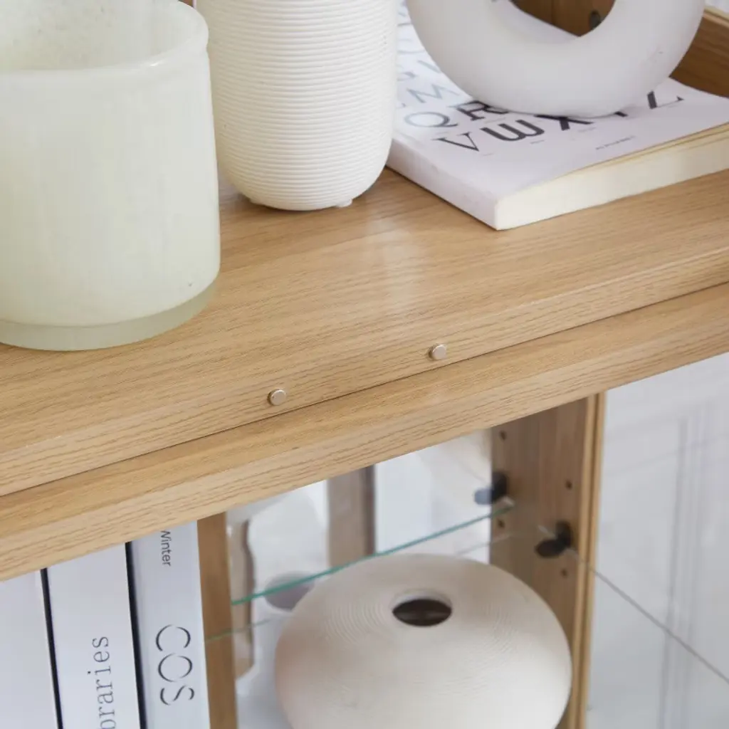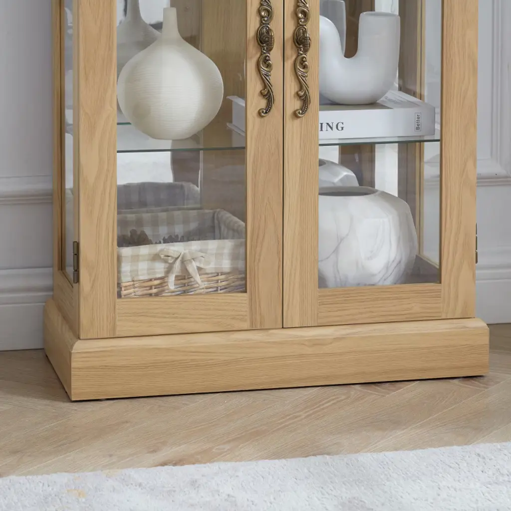 Skran 71" H Lighted Curio Cabinet Display Case, Wooden Cabinets With Adjustable Shelves And Tempered Glass Door For Living Room (Light Oak)