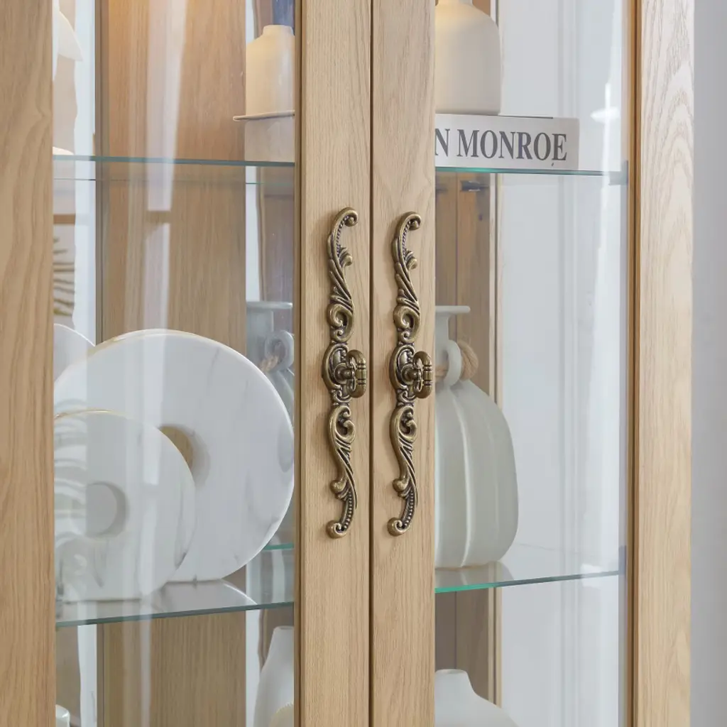 The SKRAN Lighted Curio Cabinet Display Case is a stunning addition to any living room, kitchen, or pantry. Crafted from high-quality MDF, this cabinet features an antique finish that exudes elegance and sophistication. Its six-tier design provides ample space to display your cherished collectibles, toys, or glassware in a visually captivating manner. The adjustable shelves offer flexibility, allowing you to tailor the display to accommodate items of varying sizes and heights. The cabinet is equipped with a sophisticated lighting system that enhances the visual appeal of your showcased items, creating a mesmerizing and captivating effect. The tempered glass door ensures safety and durability while maintaining a sleek appearance. The high-quality hinge design ensures smooth and quiet operation, adding to the overall refinement of the cabinet. Additionally, an anti-toppling device allows you to securely fasten the cabinet to the wall, ensuring stability and safety. This exquisite cabinet not only serves as a functional storage solution but also adds a touch of opulence to your home decor.