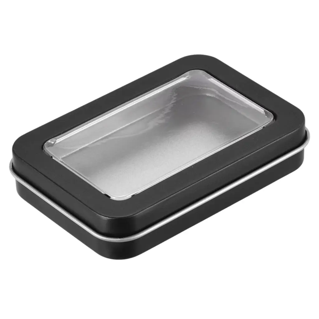 Unique Bargains Stainless Steel Glass Top Lid Jewelry Gemstone Display Box 2.2" X 2.2" Black