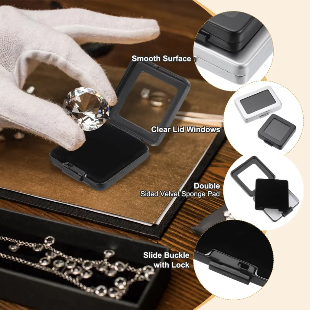 The gemstone display box is suitable for displaying and storing small jewelry items like diamonds, necklaces, rings, brooches, chains, earrings, small necklaces, beads, pendants, coins, etc. Also suitable for displaying badges, medals, buttons, patches, ribbons, and serving as a pin holder display, medal display frame, etc. It can be used in jewelry stores, boutiques, retail stores, trade shows, and for personal use at home or while traveling. The diamond display case is made of stainless steel with a smooth surface, rounded edges, and a glossy finish, enhancing the elegance of the jewelry collection. Clear glass window lids provide a full view, allowing for easy visual display of the contents, making it easier to find the desired piece of jewelry. Metal safety clasps, secure slide buckle with lock, and stainless steel construction protect jewelry from oxidation, fading, dust, and wear, also easy to open or close. Designed with a double-sided black and white velvet sponge pad, the gem display boxes for collectibles can better protect the diamond from wear and tear. The gem display case box can be closed tightly to avoid looseness caused by too many times of pressing. Just slide the safety buckle to unlock and open easily. Please choose the right size to meet your storage or display needs. The gemstone is not included in the package.