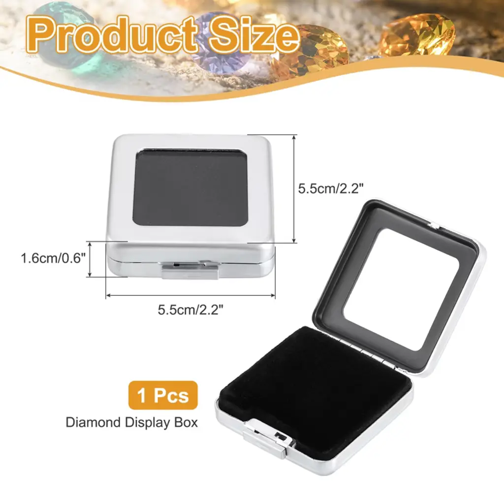 The gemstone display box is suitable for displaying and storing small jewelry items like diamonds, necklaces, rings, brooches, chains, earrings, small necklaces, beads, pendants, coins, etc. Also suitable for displaying badges, medals, buttons, patches, ribbons, and serving as a pin holder display, medal display frame, etc. It can be used in jewelry stores, boutiques, retail stores, trade shows, and for personal use at home or while traveling. The diamond display case is made of stainless steel with a smooth surface, rounded edges, and a glossy finish, enhancing the elegance of the jewelry collection. Clear glass window lids provide a full view, allowing for easy visual display of the contents, making it easier to find the desired piece of jewelry. Metal safety clasps, secure slide buckle with lock, and stainless steel construction protect jewelry from oxidation, fading, dust, and wear, also easy to open or close. Designed with a double-sided black and white velvet sponge pad, the gem display boxes for collectibles can better protect the diamond from wear and tear. The gem display case box can be closed tightly to avoid looseness caused by too many times of pressing. Just slide the safety buckle to unlock and open easily. Please choose the right size to meet your storage or display needs. The gemstone is not included in the package.
