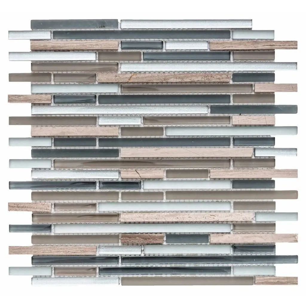 The Tile Life Victory Random Sized 12 inches x 12 inches Glass Mosaic Tile is the perfect backsplash for your new bathroom renovation! Featuring sleek, thin, contrasting glass, this mosaic will be the focal point of the room. The Victory Glass Mosaic Tile is mesh-mounted for easy installation and trimming. Perfect for backsplashes, bathrooms, kitchens, and walls, it's available in five rich colors: Cappuccino, Latte, Espresso, Grey, and White. Each case of this tile includes 11 pieces, covering a total of 11 square feet. Perfect for your next project, it provides ease of installation and excellent coverage. FEATURES:DIMENSIONS: