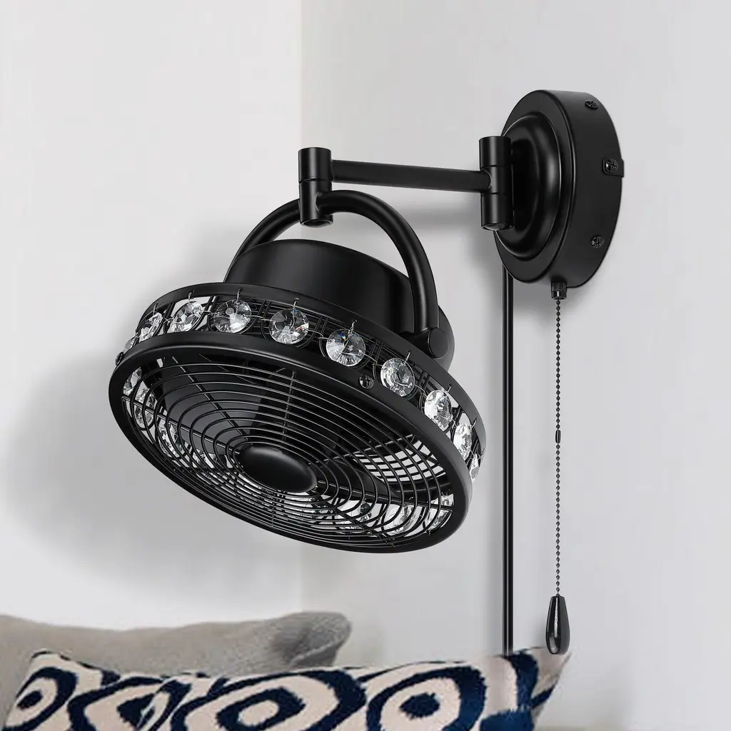 The 2-speed wall-mounted fan provides maximum multi-directional airflow. Melody can be mounted in small, awkward spaces or in front of HVAC ducts to make more efficient the heating, ventilation, or air conditioning of any space more. It also has an oscillating feature that sways back and forth, creating a nice breeze. fan speed can be controlled by a pull chain. This fan is also rated for damp locations so it can be used under covered outdoor locations.
