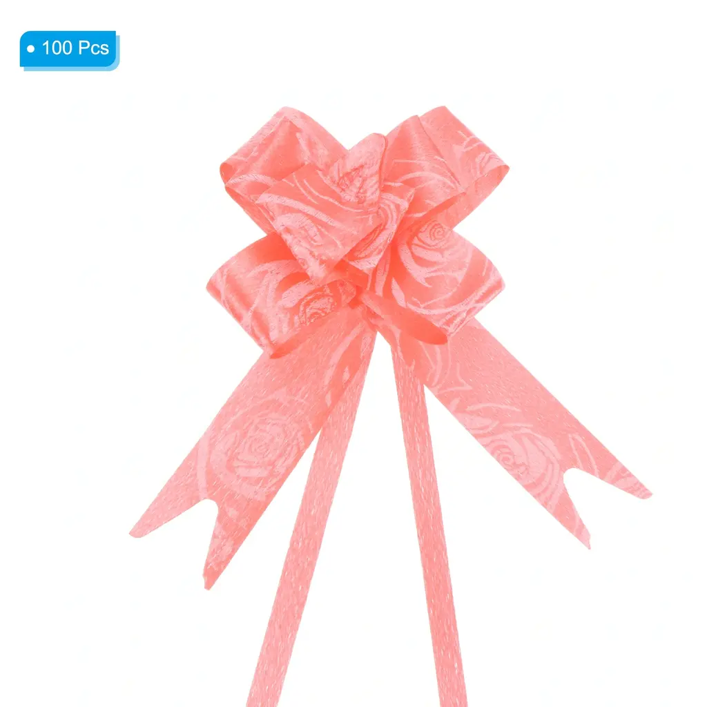These pull bows can be widely used for the decoration of weddings, banquet, Christmas, New Year, Valentine's Day, and other festive celebrations, and can also be used for the decoration of birthday gifts, packaging boxes, bouquet gifts, wine bottles, fruit baskets, cars, etc, to add a festive atmosphere.SpecificationColor: RedMaterial: PlasticSize Before Pulling: 20 x 1.2 cm / 7.9 x 0.5 inch (L*W)Packing List: 100Pcs x Gift Wrapping Pull BowsAdvantageThe pull bow is made of waterproof plastic, it won't tear easily when pulled, and it's reusable and durable.The bow ribbons have bright colors, and the surface is smooth and lustrous, which plays a very good role in decorating the holiday, making the gift more beautiful and delicate.InstructionPull the two inner ribbon cords, push the outer ribbon up gently, tie a knot, or glue it to the gift box, easy to assemble.NOTE:Just push it up gently along the ribbon, avoiding too much force to damage the fixed knots.Due to manual measurement, there may be slight errors.