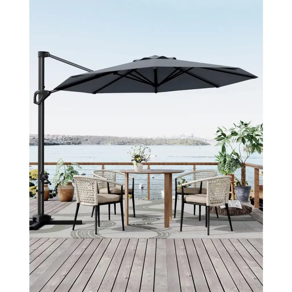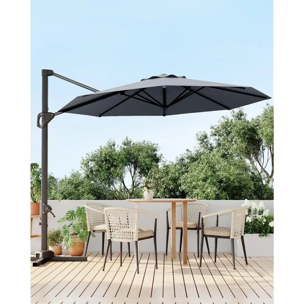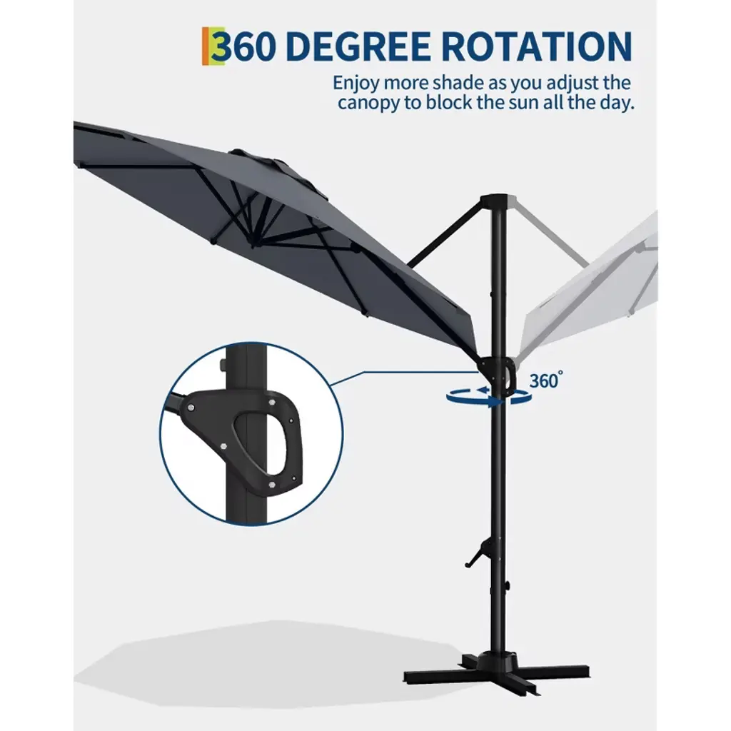 10ft Cantilever Patio Umbrella, Round Outdoor Sun Shade With 360° Rotation & Easy-lock Handle, Cross Base, For Garden, Terrace, Balcony,grey