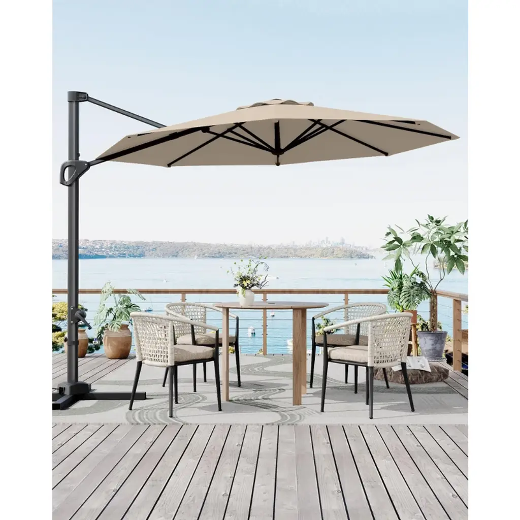 10ft Cantilever Patio Umbrella, Round Outdoor Sun Shade With 360° Rotation & Easy-lock Handle, Cross Base, For Garden, Terrace, Balcony,tan