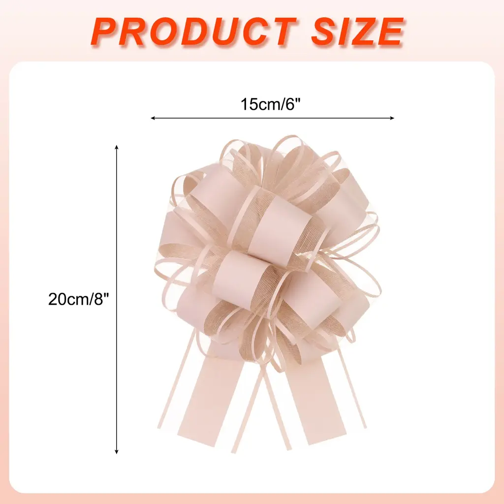 What is this?Iridescent bright colored organza pull bows with ribbons are suitable for wedding car decoration bows, gift wrapping bows, large present decorating bows, DIY crafts handicraft decoration, gift wrapping packaging, holiday decoration, wedding gift baskets decoration, flower design, party decoration, floral bouquet ribbon, scrapbooking, and can be used to decorate Valentine's Day, Christmas, Halloween, Thanksgiving, Teacher's Day, etc.What will I get?Gift wrapping bows, are in size of :20cm/8 inch width, 27cm/11 inch heightIn the package of: 10pcs x Gift wrapping bowsIs there any advantages of the product?Extra large glitter pull Bow, bright color, beautiful, which plays a good decorative role, especially suitable for holiday, wedding and party decoration, as ribbons and bows for gift wrapping; Sparkling gift big bows for presents, beautiful and elegant, soft, comfortable to the touch, and durableHow to use it?Steps of installation: 1. Select gift wrapping bows with appropriate specification; 2. For gift wrapping, holiday decorationWhat should I notice?Please pay attention to select the gift wrapping bows with suitable specifications