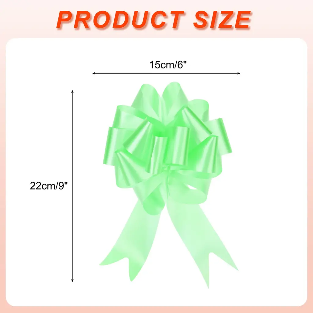 What is this?Bright colored organza pull bows with ribbons are suitable for wedding car decoration bows, gift wrapping bows, large present decorating bows, DIY crafts handicraft decoration, gift wrapping packaging, holiday decoration, wedding gift baskets decoration, flower design, party decoration, floral bouquet ribbon, scrapbooking, and can be used to decorate Valentine's Day, Christmas, Halloween, Thanksgiving, Teacher's Day, etc.What will I get?Gift wrapping bows, are in size of :12cm/5 inch width, 20cm/8 inch heightIn the package of: 10pcs x Gift wrapping bowsIs there any advantages of the product?Bright color, beautiful, which plays a good decorative role, especially suitable for holiday, wedding and party decoration; Beautiful and elegant, soft, comfortable to the touch, and durableHow to use it?Steps of installation: 1. Select gift wrapping bows with appropriate specification; 2. For gift wrapping, holiday decorationWhat should I notice?Please pay attention to select the gift wrapping bows with suitable specifications