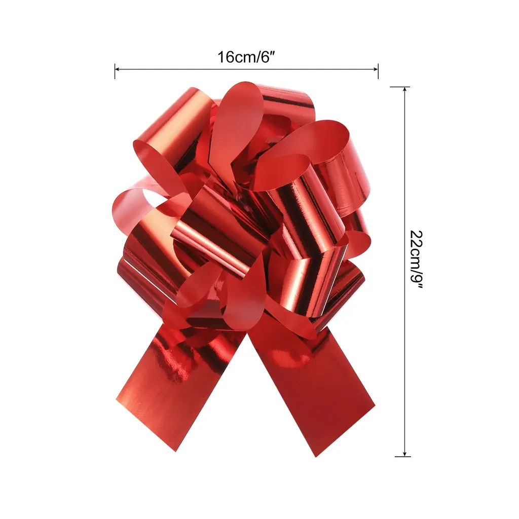 What is this?Iridescent bright colored organza pull bows with ribbons are suitable for wedding car decoration bows, gift wrapping bows, large present decorating bows, DIY crafts handicraft decoration, gift wrapping packaging, holiday decoration, wedding gift baskets decoration, flower design, party decoration, floral bouquet ribbon, scrapbooking, and can be used to decorate Valentine's Day, Christmas, Halloween, Thanksgiving, Teacher's Day, etc.What will I get?Gift wrapping bows, are in size of :16cm/6 inch width, 22cm/9 inch heightIn the package of: 10pcs x Gift wrapping bowsIs there any advantages of the product?Extra large glitter pull Bow, bright color, beautiful, which plays a good decorative role, especially suitable for holiday, wedding and party decoration, as ribbons and bows for gift wrapping; Sparkling gift big bows for presents, beautiful and elegant, soft, comfortable to the touch, and durableHow to use it?Steps of installation: 1. Select gift wrapping bows with appropriate specification; 2. For gift wrapping, holiday decorationWhat should I notice?Please pay attention to select the gift wrapping bows with suitable specifications