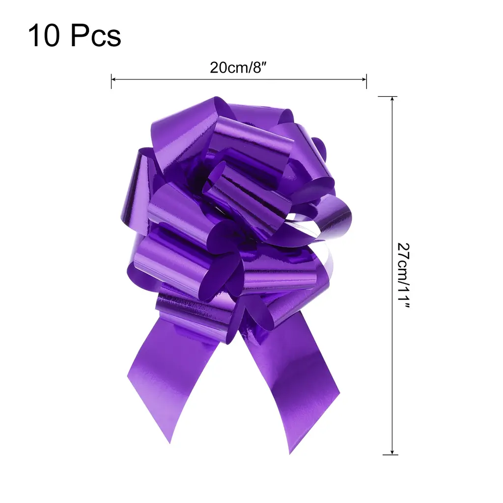 What is this?Iridescent bright colored organza pull bows with ribbons are suitable for wedding car decoration bows, gift wrapping bows, large present decorating bows, DIY crafts handicraft decoration, gift wrapping packaging, holiday decoration, wedding gift baskets decoration, flower design, party decoration, floral bouquet ribbon, scrapbooking, and can be used to decorate Valentine's Day, Christmas, Halloween, Thanksgiving, Teacher's Day, etc.What will I get?Gift wrapping bows, are in size of :16cm/6 inch width, 22cm/9 inch heightIn the package of: 10pcs x Gift wrapping bowsIs there any advantages of the product?Extra large glitter pull Bow, bright color, beautiful, which plays a good decorative role, especially suitable for holiday, wedding and party decoration, as ribbons and bows for gift wrapping; Sparkling gift big bows for presents, beautiful and elegant, soft, comfortable to the touch, and durableHow to use it?Steps of installation: 1. Select gift wrapping bows with appropriate specification; 2. For gift wrapping, holiday decorationWhat should I notice?Please pay attention to select the gift wrapping bows with suitable specifications