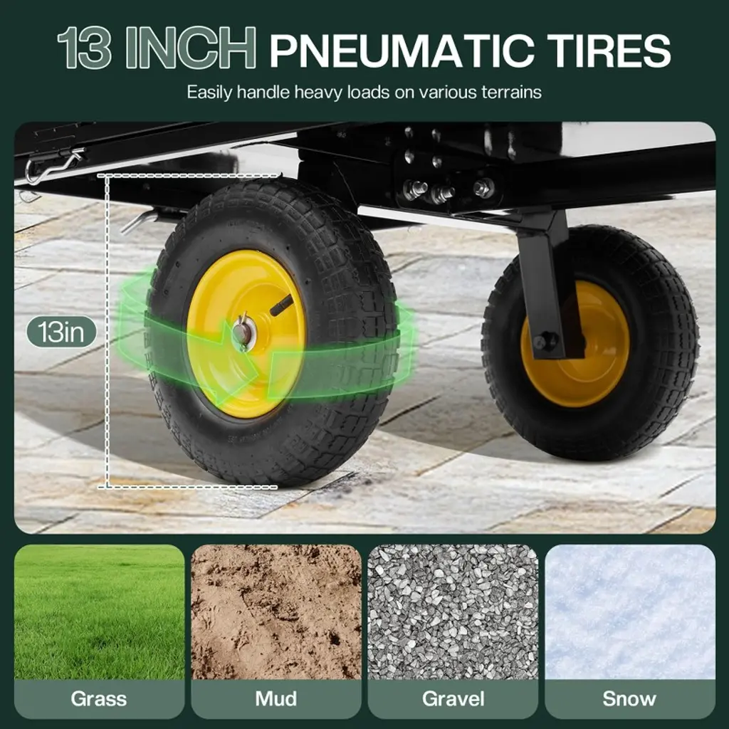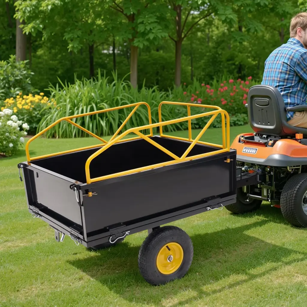 12 Cu Ft Tow-behind Dump Cart,500-lb Heavy-duty Garden Utility Trailer, Removable Sides & Handle, Atv/utv Lawn Mower Tractor
