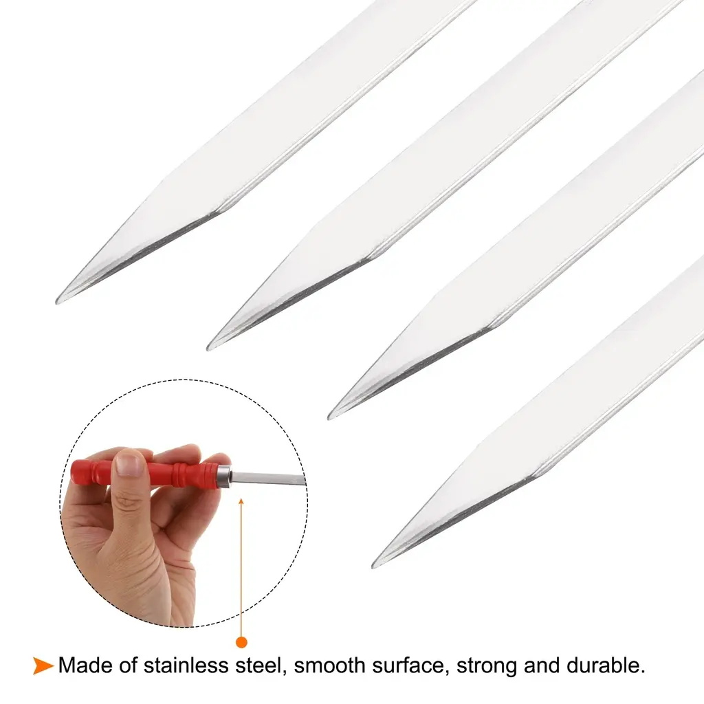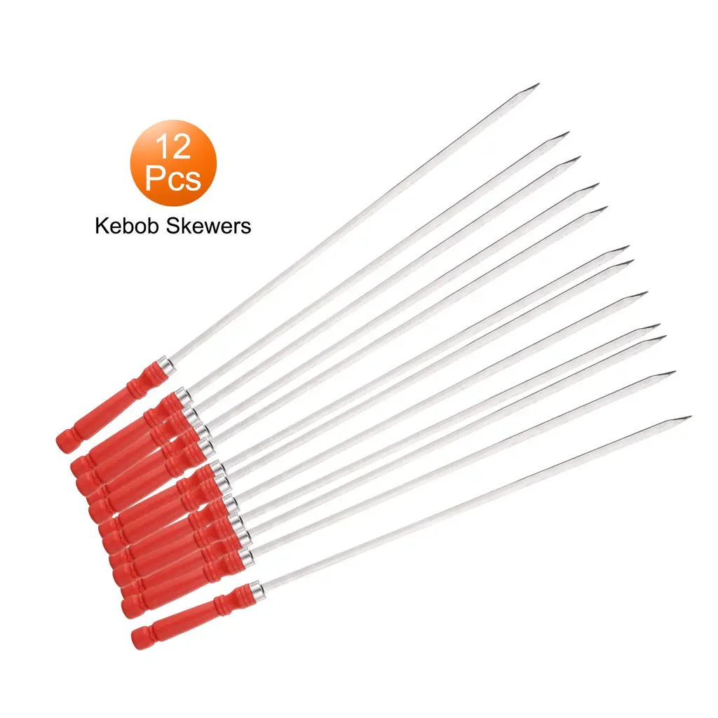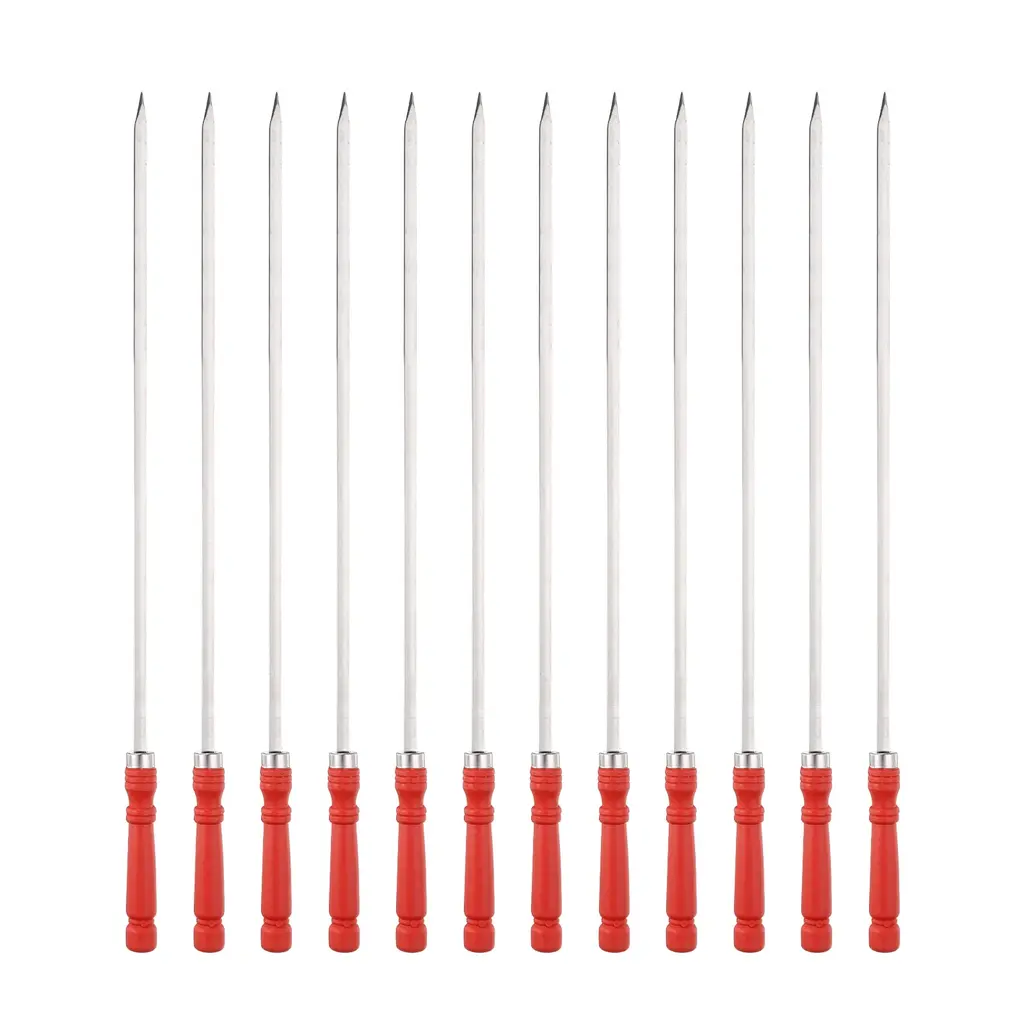 12pcs Kebob Skewers 40cmx5.92mmx1.66mm Flat Stick With Red Grip Handle - Silver