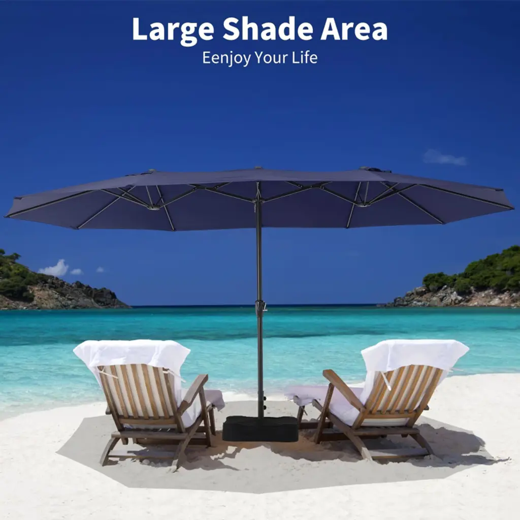 Elevate your outdoor experience with 15 FT Extra Large Patio Umbrella, offering generous shade, durable construction, and effortless convenience for your garden, backyard, or poolside gatherings!Highlights at a Glance:Generous 15 x 9 ft coverage for ultimate outdoor comfort.Double-sided market umbrella design for stylish shade.Convenient crank handle for easy opening and closing.UV protective and waterproof fabric ensures lasting durability.Sturdy base for reliable support by the poolside or patio.Specification:Color: Dark Gray/Navy Blue/Khaki/Wine RedMaterial: Iron+Polyester clothDimension: 14.93 ft x 8.79 ft x 9.15 ftBase Size: 25.39 inches x 25.39 inchesPacking List:1 x Patio Umbrella1 x Instruction ManualNote:For best results and to extend the life of your umbrella, please close and secure it when not in use, especially during windy or rainy conditions.Measure your patio or outdoor space to ensure the umbrella provides adequate shade. Double-sided umbrellas come in various sizes, so check the dimensions to make sure it fits your needs for sun protection.Carefully follow the installation instructions when assembling.