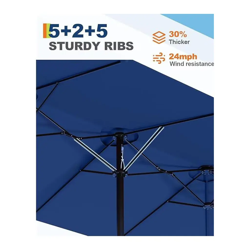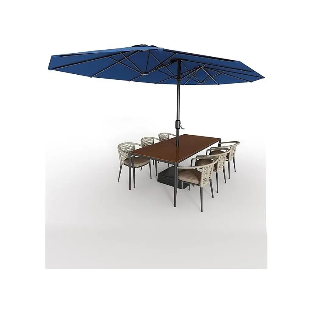 15ft Large Patio Umbrella With Base - Rectangular Patio Umbrella With Crank Handle, Uv Protection For Outdoor Market, Backyard, Pool Navy Blue