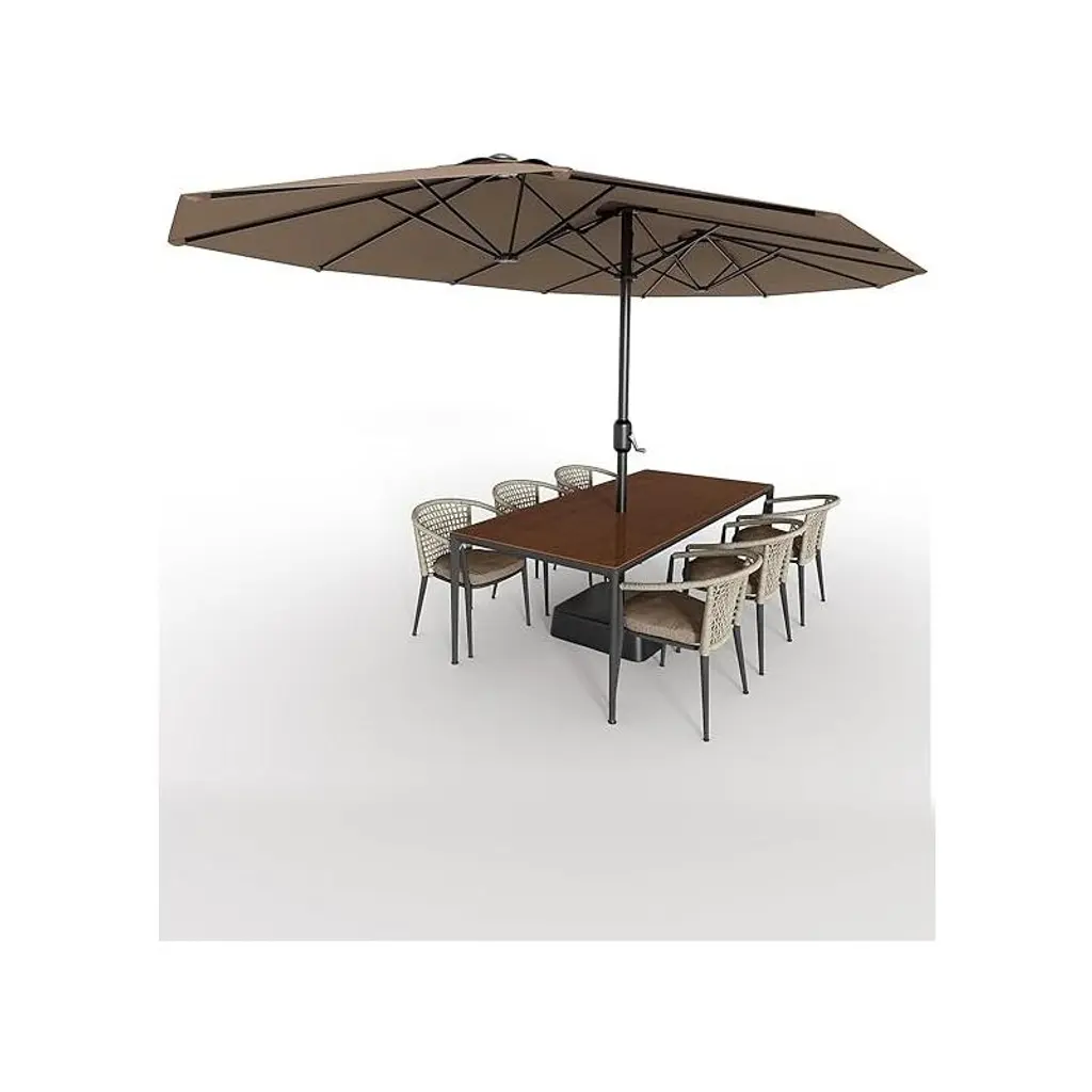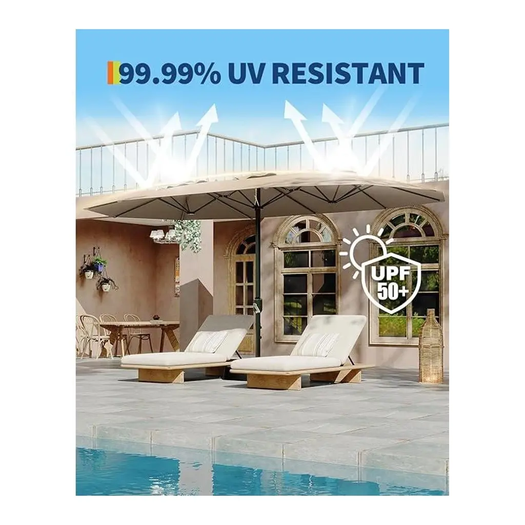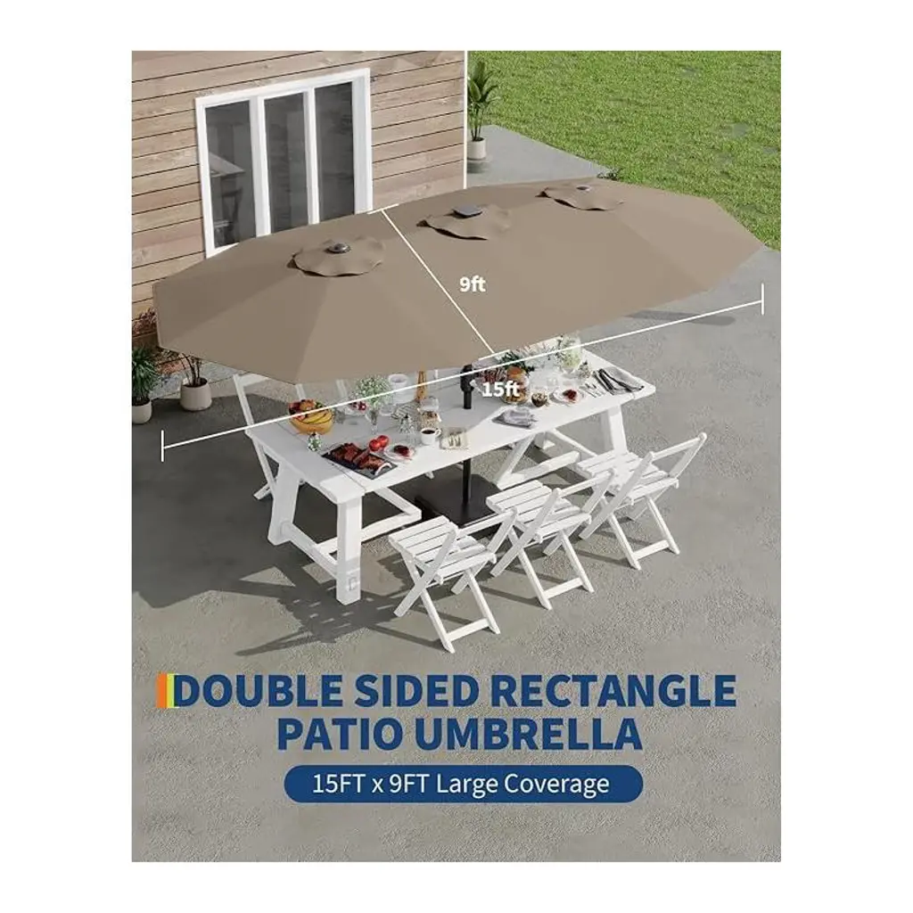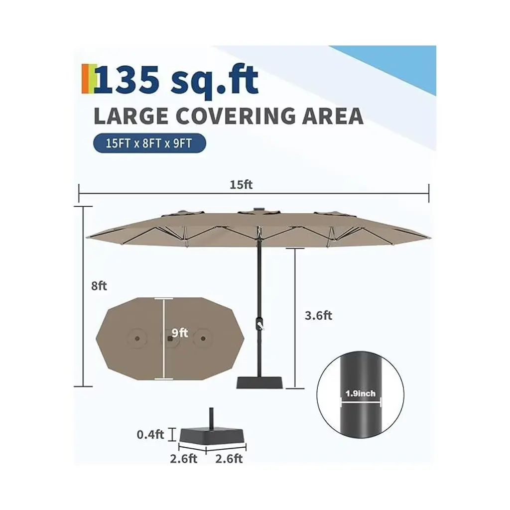 Garvee 15 FT Large Patio Umbrella with Base Included, Double-Sided Outdoor Market Rectangle Umbrellas Oversized Shade for 2-8 People, Weighted Base for Pool, Deck, Backyard