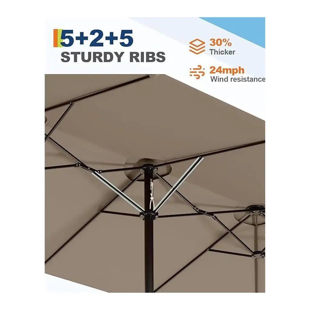 15ft Large Patio Umbrella With Base - Rectangular Patio Umbrella With Crank Handle, Uv Protection For Outdoor Market, Backyard, Pool Tan