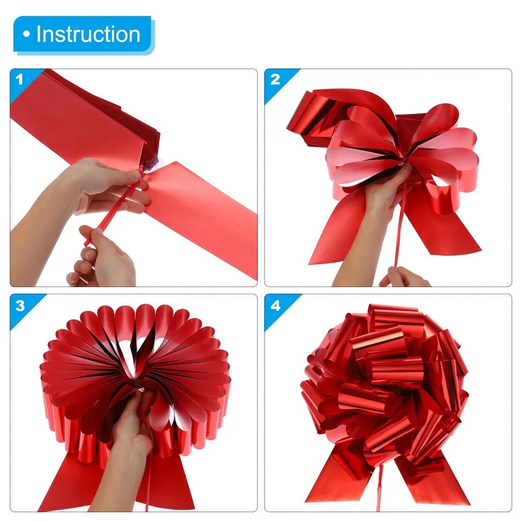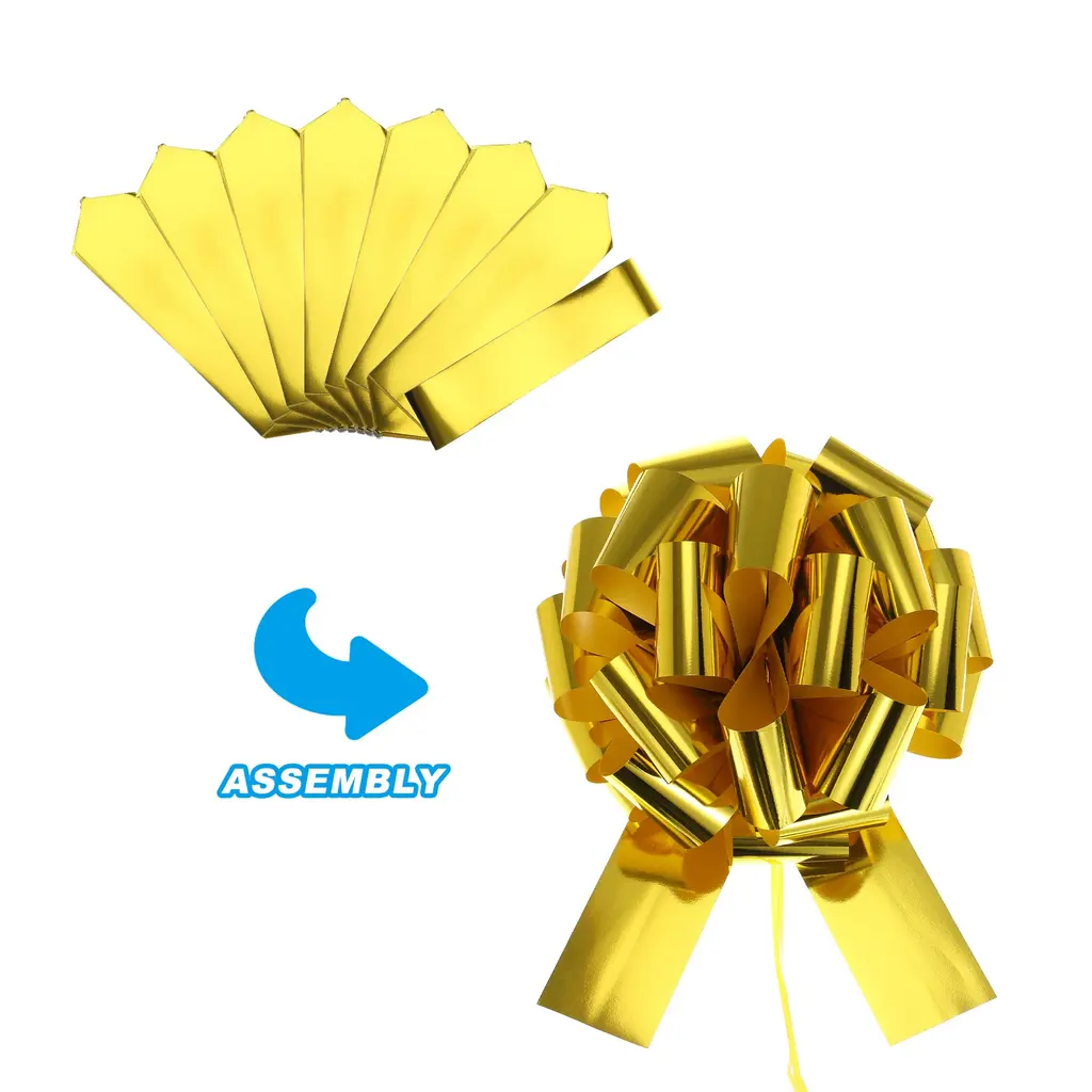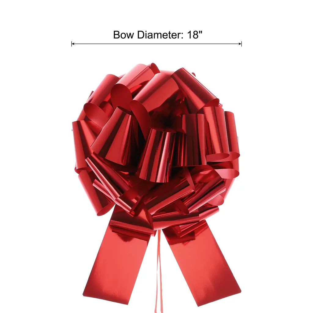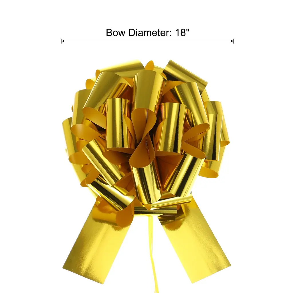 Car pull bows can be used to wrap your birthday gifts, decorate your car and home, and make some crafts, they can also be used for door decoration, Christmas decoration, or decoration for parties, weddings, welcome parties, and other festivals, making the important day filled with a romantic and warm atmosphere.Specification Color: GoldMaterial: Oil Plastic PaperBow Diameter: 18 InchPackage List: 1 x Giant Gift Wrapping Bow RibbonAdvantage1. Reliable Material: Car bow is made of oil plastic paper material, it is waterproof, lightweight, strong, durable and not easy to fade, perfect for indoor and outdoor use.2. Exquisite Design: The beautiful car bow adopts classic colors and is brightly colored. It can be made into an oversized bow, which looks very delicate and beautiful and easily attracts people's attention.Instruction No other tools are needed, just open the pull tab, slowly and gently pull the middle pull tab, pull the top and push the pull core directly, push it into a ball shape and tie a knot to fix it, and then it can be tied to car door handles and other decorative places. The operation is simple and convenient and can be completed in a short time.NOTE: Because it is measured manually, there may be errors in the size, and there may be color differences due to differences in monitors. Please refer to the actual product.