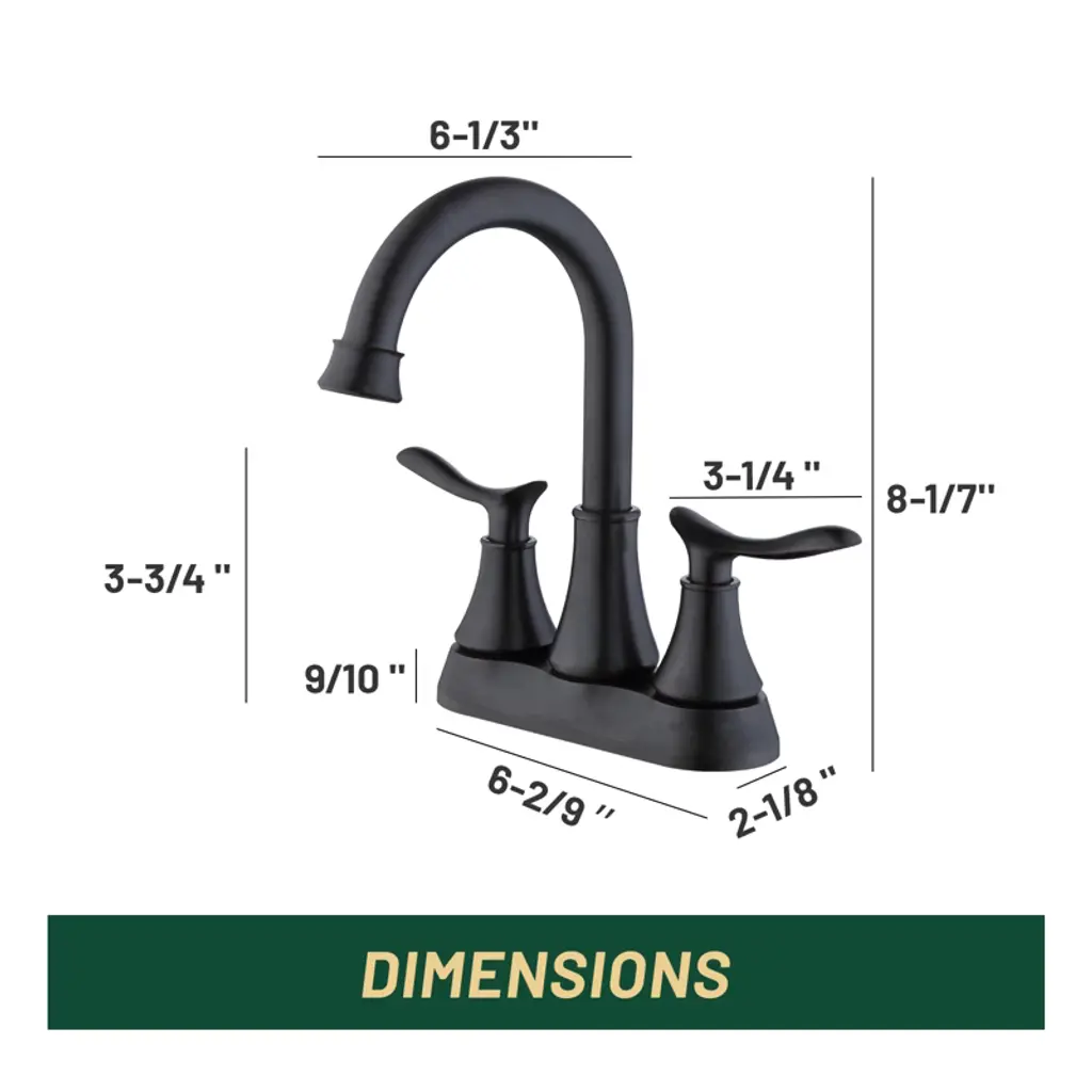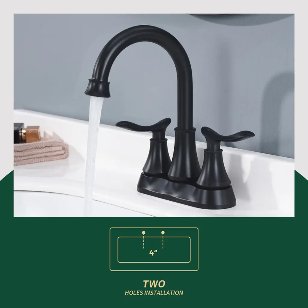 2-handle 4-inch Matte Black Bathroom Faucet, Bathroom Vanity Sink Faucets With Pop-up Drain And Supply Hoses