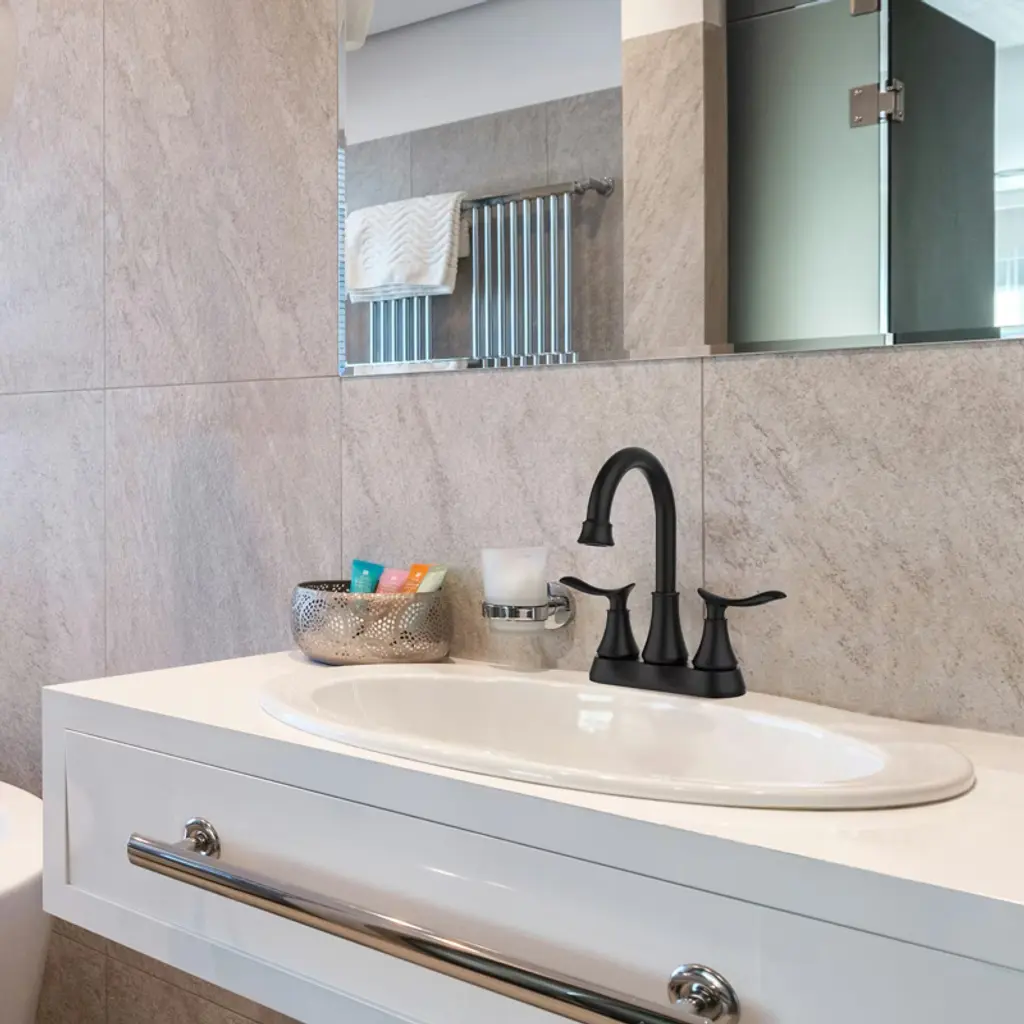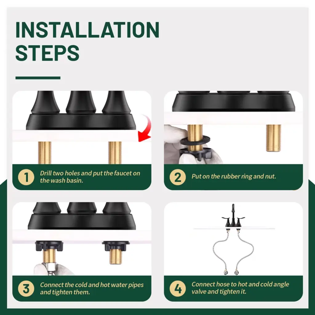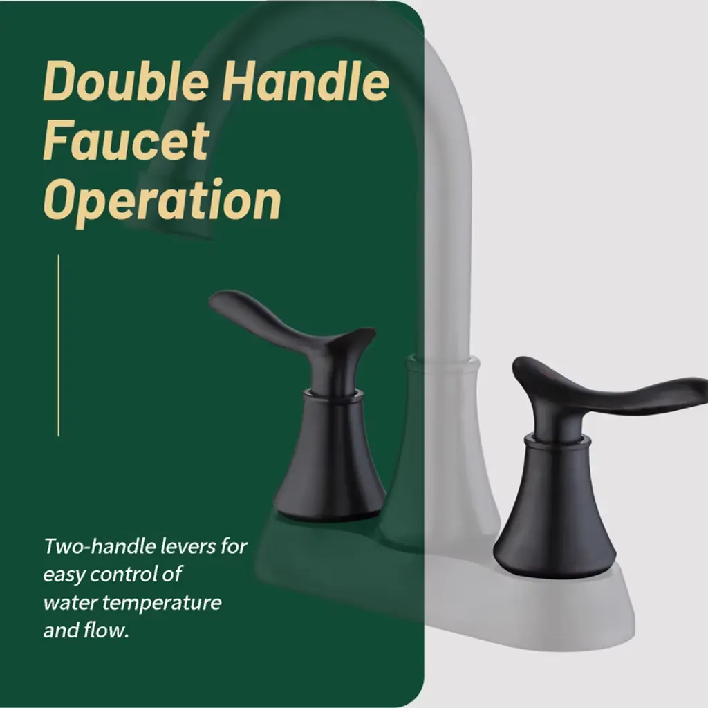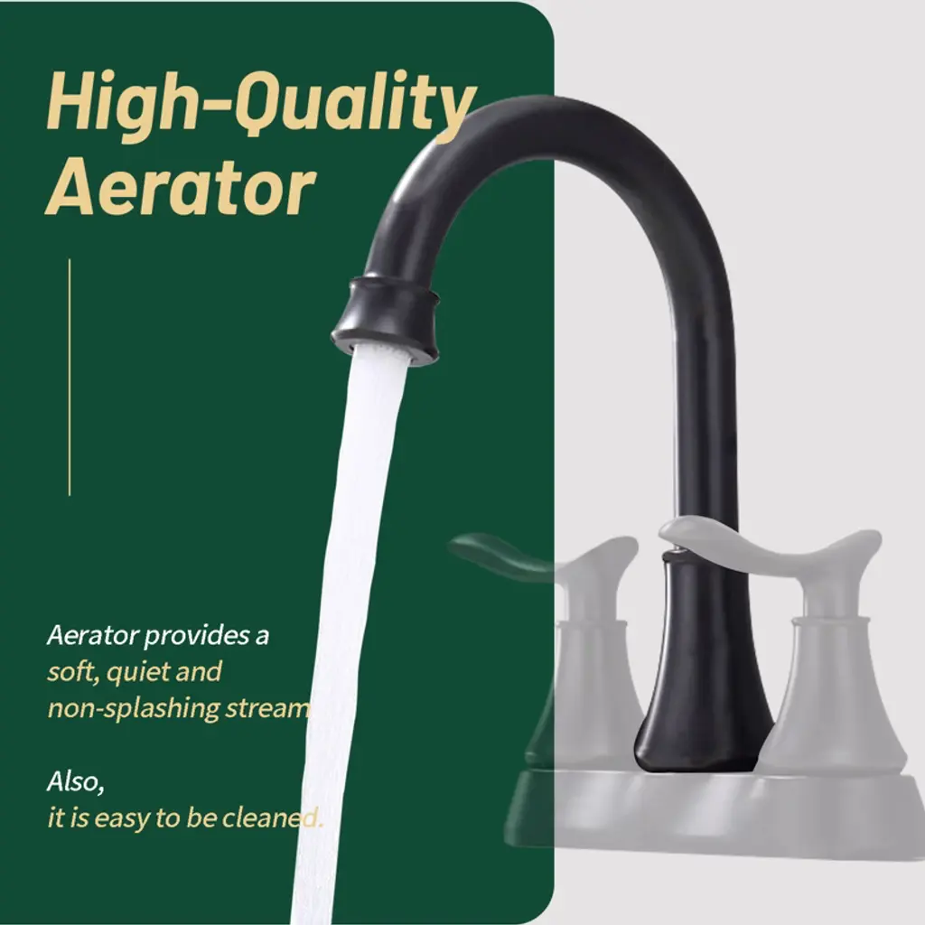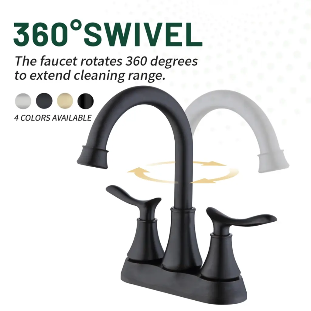 Our bathroom faucets are made of high quality materials that are durable and corrosion resistant. The professionally tested ceramic cartridge ensures that the faucet will not leak or drip and is durable. Perfect for new house renovation, old house renovation, high-end villas, high-end apartments, luxury hotels, elite and middle class. HIGH QUALITY MATERIALS & DESIGN : Exquisite bathroom sink faucet is rust and corrosion resistant to ensure durability. Dual Handle Metal Handle; The dual handle handle bathroom faucet is designed for precise control of water volume and water temperature, and the advanced ceramic cartridge prevents leaks and drips. WATER CONSERVATION: Imported ABS aerator of 2-hole mount 4-inch center bathroom sink faucet enhances the dense foaming effect, the water flow is dense and soft without splashing, which improves water conservation efficiency. Suitable for rental houses, new apartments, bachelor pads, motels, travel trailers and homes. EASY INSTALLATION: The bathroom faucet is designed to help you save money by following the instructions and installing it in less than 30 minutes without a plumber. Everything you need is included in the box (including the pop-up drain and stainless steel braided inlet hose). 360° Swivel: The 360-degree swivel nozzle provides a full range of cleaning for your bathroom sink.