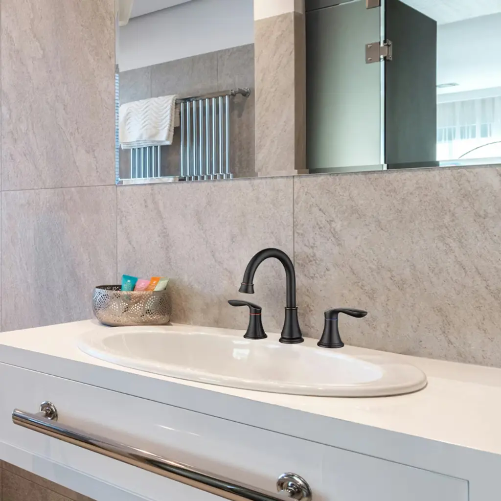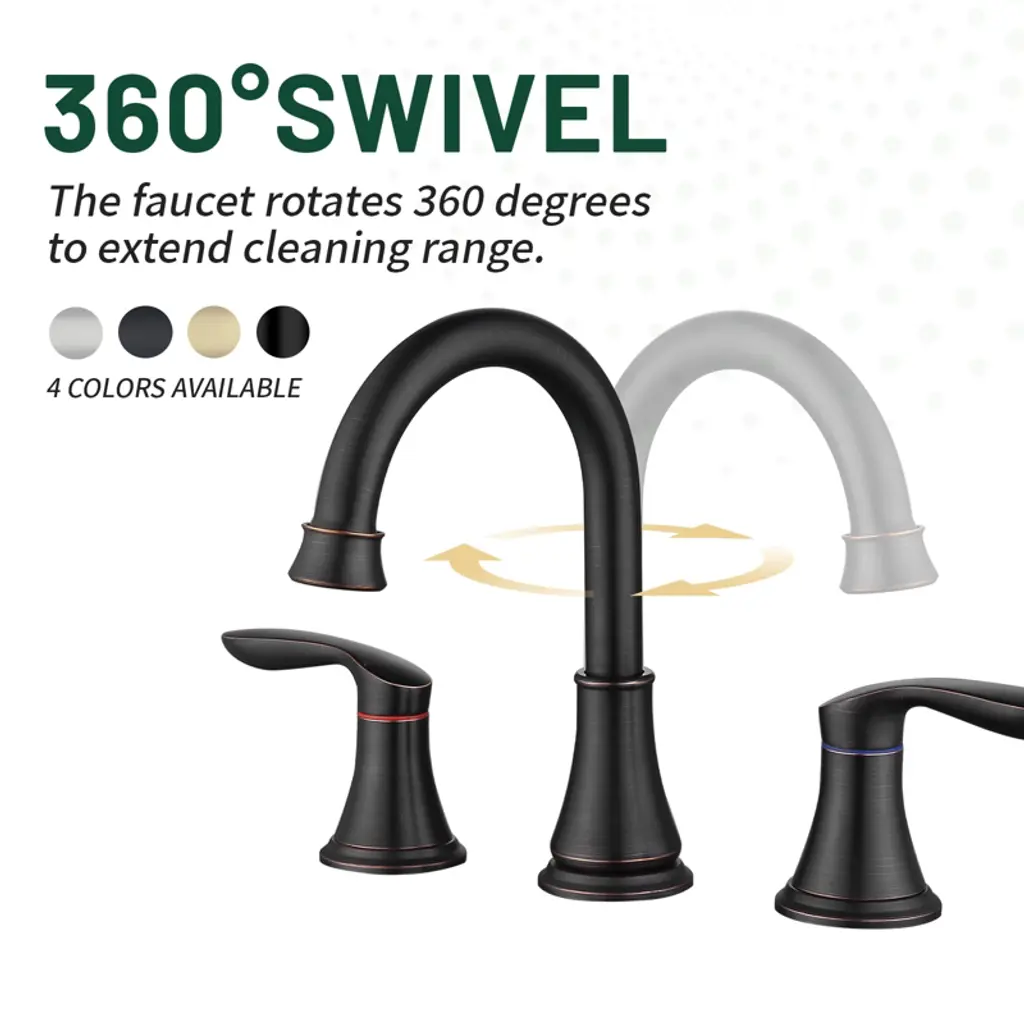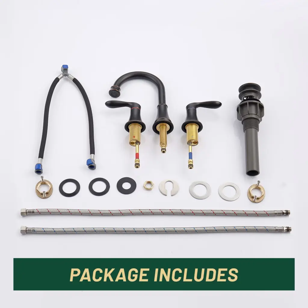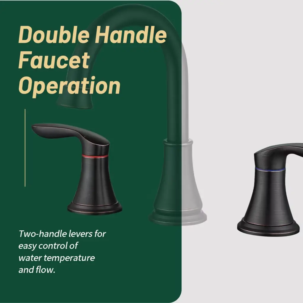 2-handle 8 Inch Widespread Bathroom Sink Faucet Oil-rubbed Bronze Faucet 3 Hole Spout Vanity Sink Basin Faucets With Pop Up Drain Assembly