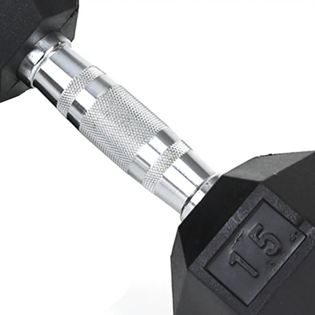 Specification:Description:Enhance your home workout routine with these 12 lbs rubber-coated solid cast iron dumbbells, featuring a contoured chrome handle for a secure, comfortable grip. Designed with durable, rubber-covered hexagon heads, these dumbbells prevent rolling and are easy to store, making them ideal for both home and gym training. Perfect for building strength and toning all major muscle groups including the chest, arms, back, legs, and core. The ergonomic, knurled chrome handles provide a non-slip, secure hold, while the rubber coating protects flooring and equipment, reduces noise, and is easy to clean. These dumbbells are built for durability and offer an efficient tool for your strength training goals.Key Features: