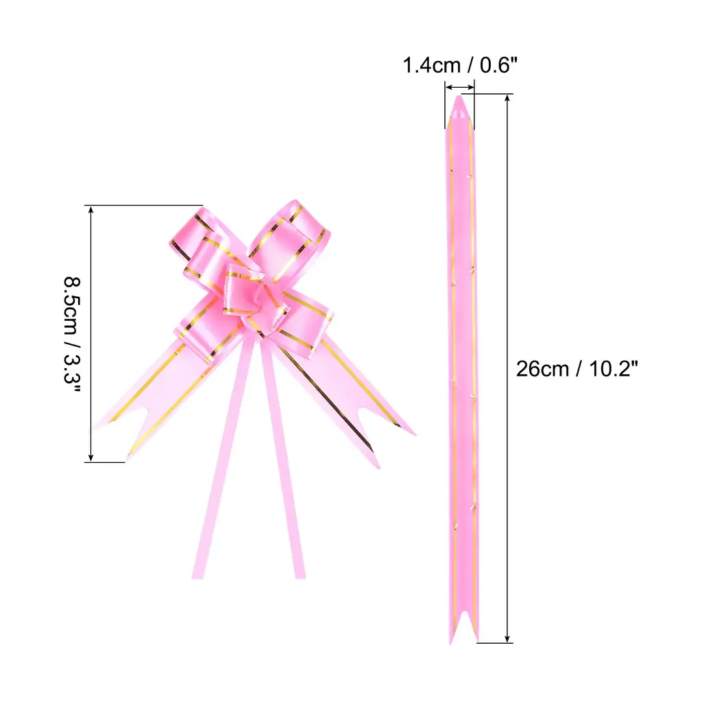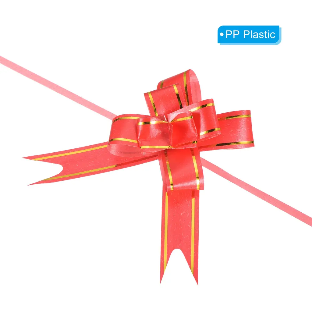 These pull bows can be widely used for the decoration of weddings, banquet, Christmas, New Year, Valentine's Day, and other festive celebrations, and can also be used for the decoration of birthday gifts, packaging boxes, bouquet gifts, wine bottles, fruit baskets, cars, etc, to add a festive atmosphere.SpecificationColor: RedMaterial: PP PlasticBow Diameter: 8.5 cm / 3.3 inchSize Before Pulling: 26 x 1.4 cm / 10.2 x 0.6 inch (L*W)Packing List: 200pcs x Gift Wrapping Pull BowsAdvantageThe pull bow is made of waterproof plastic, it won't tear easily when pulled, and it's reusable and durable.The bow ribbons have bright colors, and the surface is shiny and lustrous, which plays a very good role in decorating the holiday, making the gift more beautiful and delicate.InstructionPull the two inner ribbon cords, push the outer ribbon up gently, tie a knot, or glue it to the gift box, easy to assemble.NOTE:Just push it up gently along the ribbon, avoiding too much force to damage the fixed knots.Due to manual measurement, there may be slight errors.