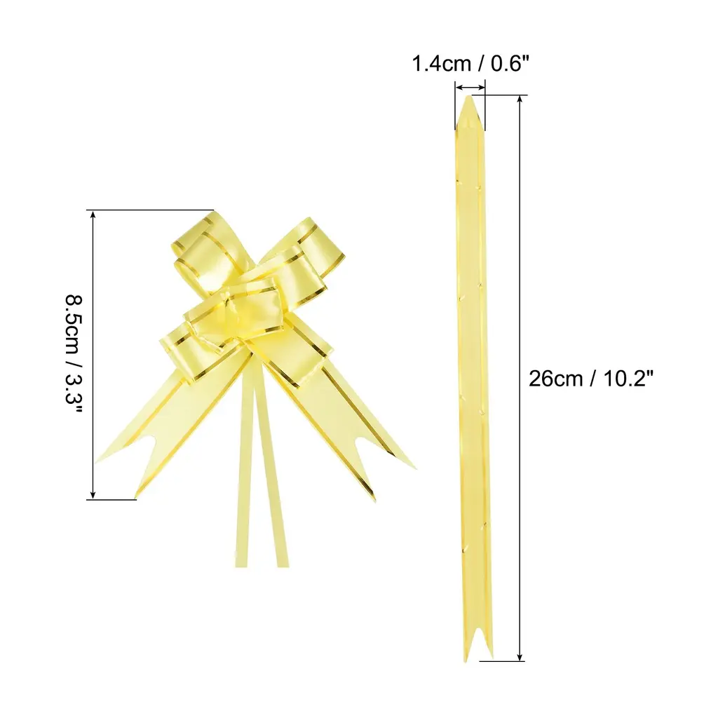 200pcs 3.3inch Pull Bows Gift Wrapping Pull Bow Gold Thread Style - Yellow