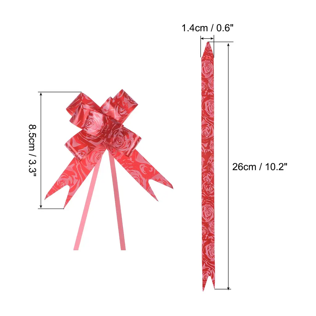 200pcs 3.3inch Pull Bows Ribbon Gift Wrapping Pull Bow Rose Pattern - Rose Red