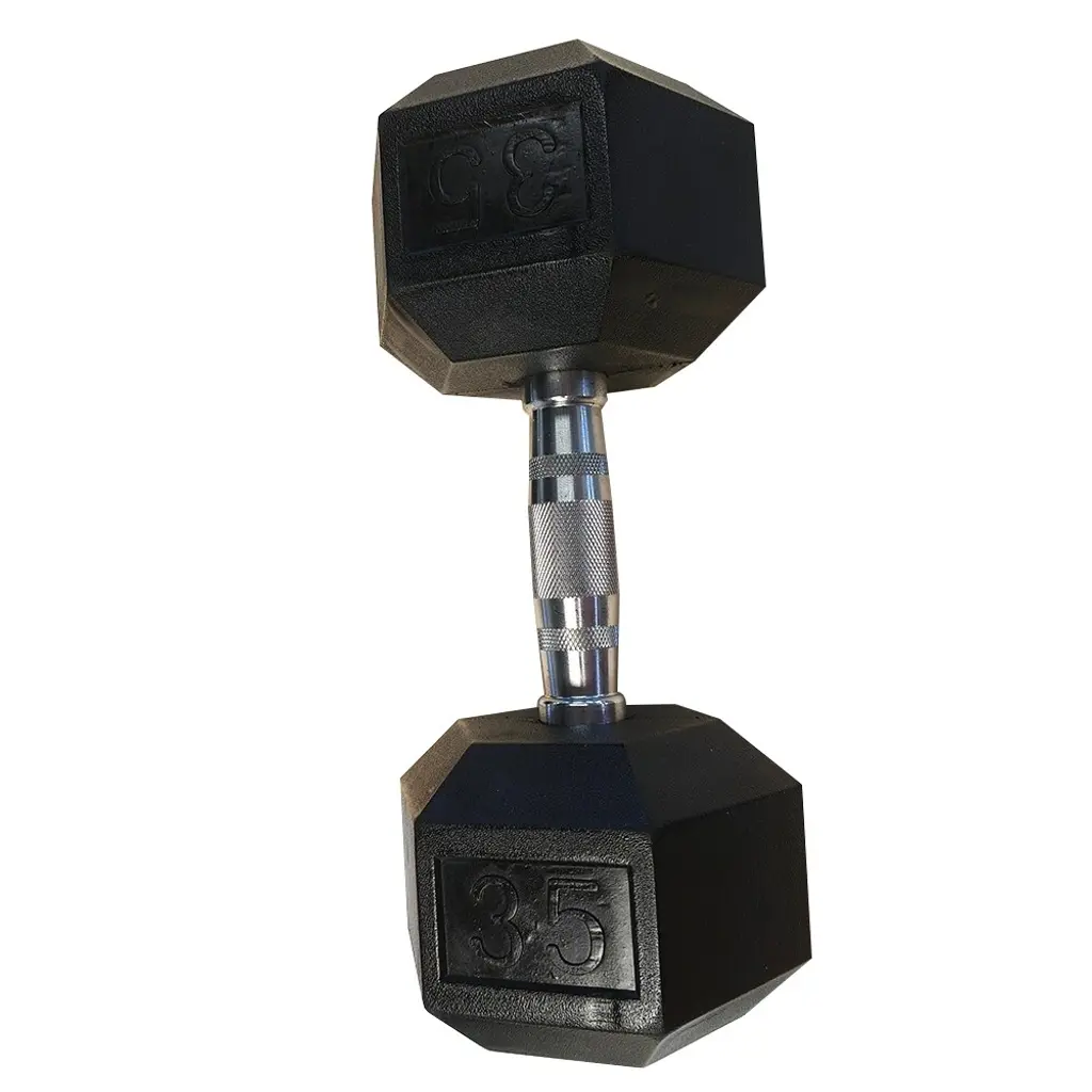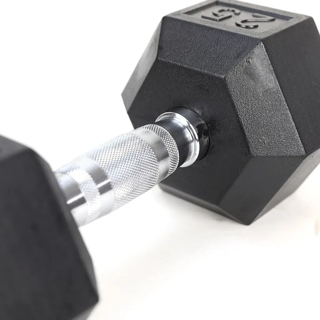Specification:Description:Enhance your home workout routine with these 20 lbs rubber-coated solid cast iron dumbbells, featuring a contoured chrome handle for a secure, comfortable grip. Designed with durable, rubber-covered hexagon heads, these dumbbells prevent rolling and are easy to store, making them ideal for both home and gym training. Perfect for building strength and toning all major muscle groups including the chest, arms, back, legs, and core. The ergonomic, knurled chrome handles provide a non-slip, secure hold, while the rubber coating protects flooring and equipment, reduces noise, and is easy to clean. These dumbbells are built for durability and offer an efficient tool for your strength training goals.