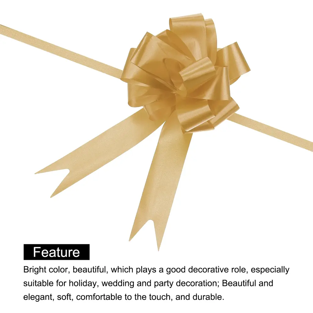 What is this?Bright colored organza pull bows with ribbons are suitable for wedding car decoration bows, gift wrapping bows, large present decorating bows, DIY crafts handicraft decoration, gift wrapping packaging, holiday decoration, wedding gift baskets decoration, flower design, party decoration, floral bouquet ribbon, scrapbooking, and can be used to decorate Valentine's Day, Christmas, Halloween, Thanksgiving, Teacher's Day, etc.What will I get?Gift wrapping bows, are in size of :12cm/5 inch width, 20cm/8 inch heightIn the package of: 20pcs x Gift wrapping bowsIs there any advantages of the product?Bright color, beautiful, which plays a good decorative role, especially suitable for holiday, wedding and party decoration; Beautiful and elegant, soft, comfortable to the touch, and durableHow to use it?Steps of installation: 1. Select gift wrapping bows with appropriate specification; 2. For gift wrapping, holiday decorationWhat should I notice?Please pay attention to select the gift wrapping bows with suitable specifications