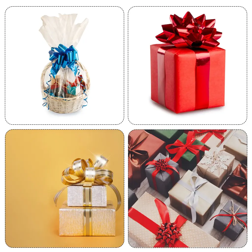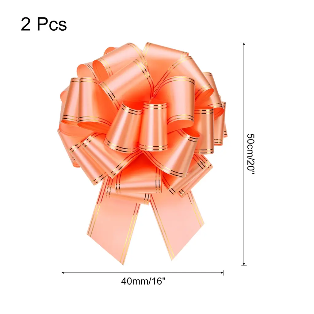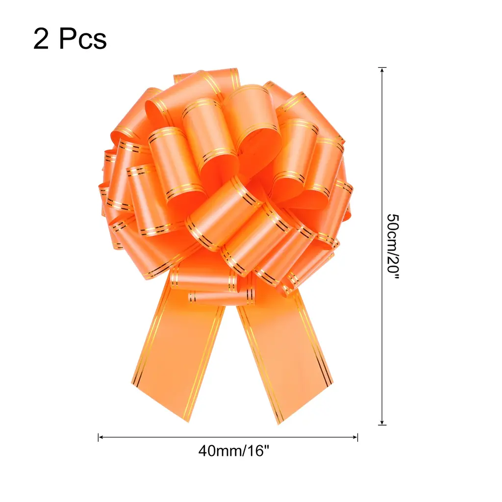 What is this?Bright solid colored organza pull bows with ribbons are suitable for gift wrapping bows, present decorating bows, DIY crafts handicraft decoration, gift wrapping packaging, holiday decoration, wedding gift baskets decoration, flower design, party decoration, floral bouquet ribbon, scrapbooking, and can be used to decorate Christmas, Valentine's Day, Halloween, Easter, Thanksgiving, Teacher's Day, Mother's Day, etc.What will I get?Gift wrapping bows, are in size of : 30cm x 40cm/12-inch x 16-inch(L*W)In the package of: 2pcs x Gift wrapping bowsIs there any advantages of the product?Big pull bow with gold edge, bright color, beautiful, which plays a good decorative role, especially suitable for holiday, wedding and party decoration; Beautiful and elegant, soft, comfortable to the touch, and durableHow to use it?Steps of installation: 1. Select gift wrapping bows with appropriate specification; 2. For gift wrapping, holiday decorationWhat should I notice?Please pay attention to select the gift wrapping bows with suitable specifications