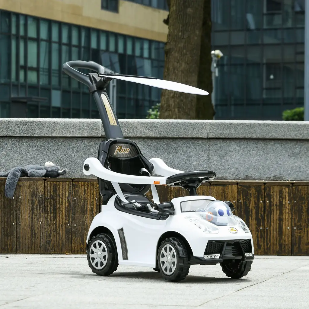 3-In-1 Push Car For Toddlers, Sliding Ride-On Car With Removable Handle, Canopy, Music & Safety Guardrail For Kids 1-3 Years - Kids - White