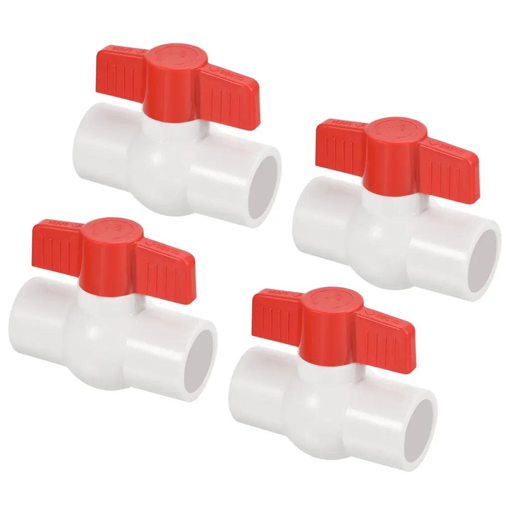 Color: White, Material: UPVC, Inner Diameter: 25mm / 3/4 Inch, Handle Length: 72mm / 2.83 Inch, Size: 79 x 70mm / 3.1 x 2.8 Inch (L*H), Packing List: 4 x UPVC Ball ValveAdvantage: Made of UPVC, the weight is lighter than metal fittings, the impact strength is high, it is not easy to rust and scale, and it is firmly installed; the butterfly handle with manual on/off control is easy to operate; the overall polishing treatment makes the pipe fittings beautiful and wear-resistant, and the water flow is smooth, The water pipe connection method is glued.INSTRUCTION: Made of UPVC material, smooth plastic tubes with corresponding outer diameters at both ends are bonded by glue.Application: UPVC Ball Valve Fittings is a straight-through valve connecting two pipes in the same direction, ball valves use a spherical disc to control flow between pipes, pipes, or hoses. Suitable for indoor and outdoor use such as sewer pipes, daily household, landscape and farmland irrigation, swimming pools, cold water, ventilation, waste applications, aquaculture, and agricultural irrigation systems.NOTE: Wear gloves to operate. The end of the casing should be smooth and tidy. Do not apply too much adhesive to the UPVC material. Regularly check during use, and replace it in time if it is aging.UPVC Ball Valve Fittings is a straight-through valve connecting two pipes in the same direction, ball valves use a spherical disc to control flow between pipes, pipes, or hoses. Suitable for indoor and outdoor use such as sewer pipes, daily household, landscape and farmland irrigation, swimming pools, cold water, ventilation, waste applications, aquaculture, and agricultural irrigation systems.Specification Color: WhiteMaterial: UPVCInner Diameter: 25mm / 3/4 InchHandle Length: 72mm / 2.83 InchSize: 79 x 70mm / 3.1 x 2.8 Inch (L*H)Packing List: 4 x UPVC Ball ValveAdvantage Made of UPVC, the weight is lighter than metal fittings, the impact strength is high, it is not easy to rust and scale, and it is firmly installed; the butterfly handle with manual on/off control is easy to operate; the overall polishing treatment makes the pipe fittings beautiful and wear-resistant, and the water flow is smooth, The water pipe connection method is glued. Instruction Made of UPVC material, smooth plastic tubes with corresponding outer diameters at both ends are bonded by glue.NOTE Wear gloves to operate. The end of the casing should be smooth and tidy. Do not apply too much adhesive to the UPVC material. Regularly check during use, and replace it in time if it is aging.