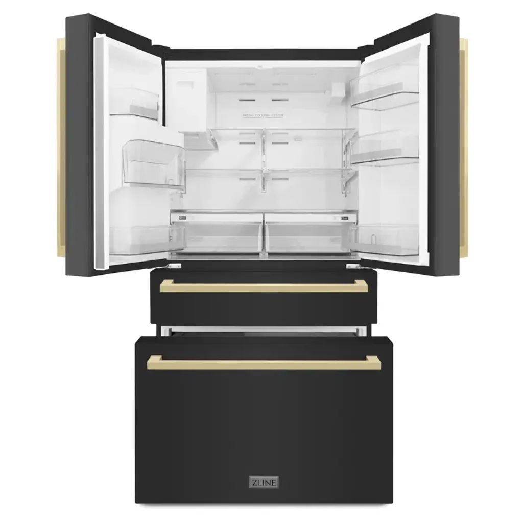 Luxury isn’t meant to be desired - it’s meant to be attainable. Designed in Lake Tahoe, USA, the ZLINE 36" Autograph Edition 22.5 cu. ft Freestanding French Door Refrigerator with Ice Maker in Fingerprint Resistant Black Stainless Steel with Accents (RFMZ-36-BS) provides a professional culinary experience by pairing unmatched performance with personalized touches. Encompassing limitless beauty, precision, and quality, the Autograph Edition Series creates a luxury look that will transform your space. Achieve ZLINE Attainable Luxury® excellence with innovative features designed to enhance your kitchen’s capability.