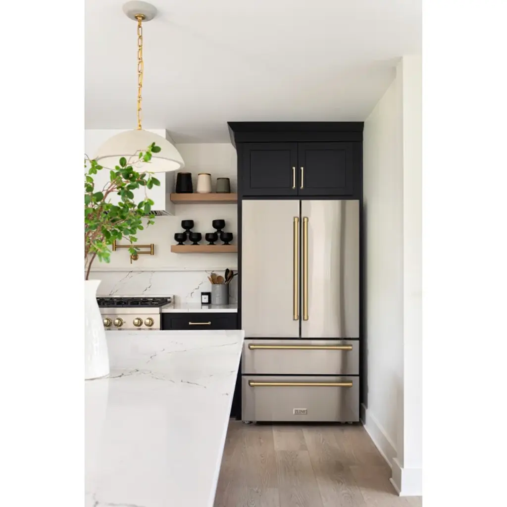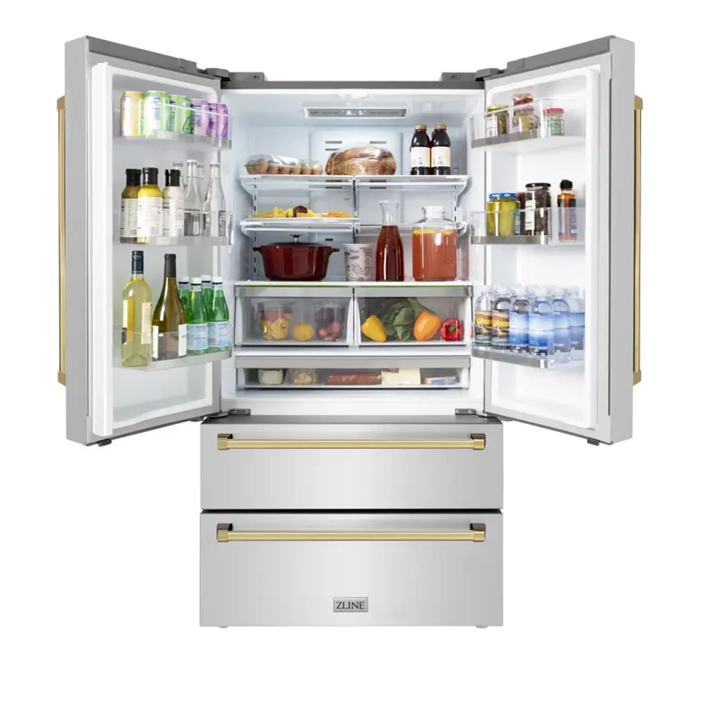 36" Autograph Edition 22.5 Cu. Ft 4-Door French Door Refrigerator With Ice Maker In Stainless Steel With Champagne Bronze Square Handles