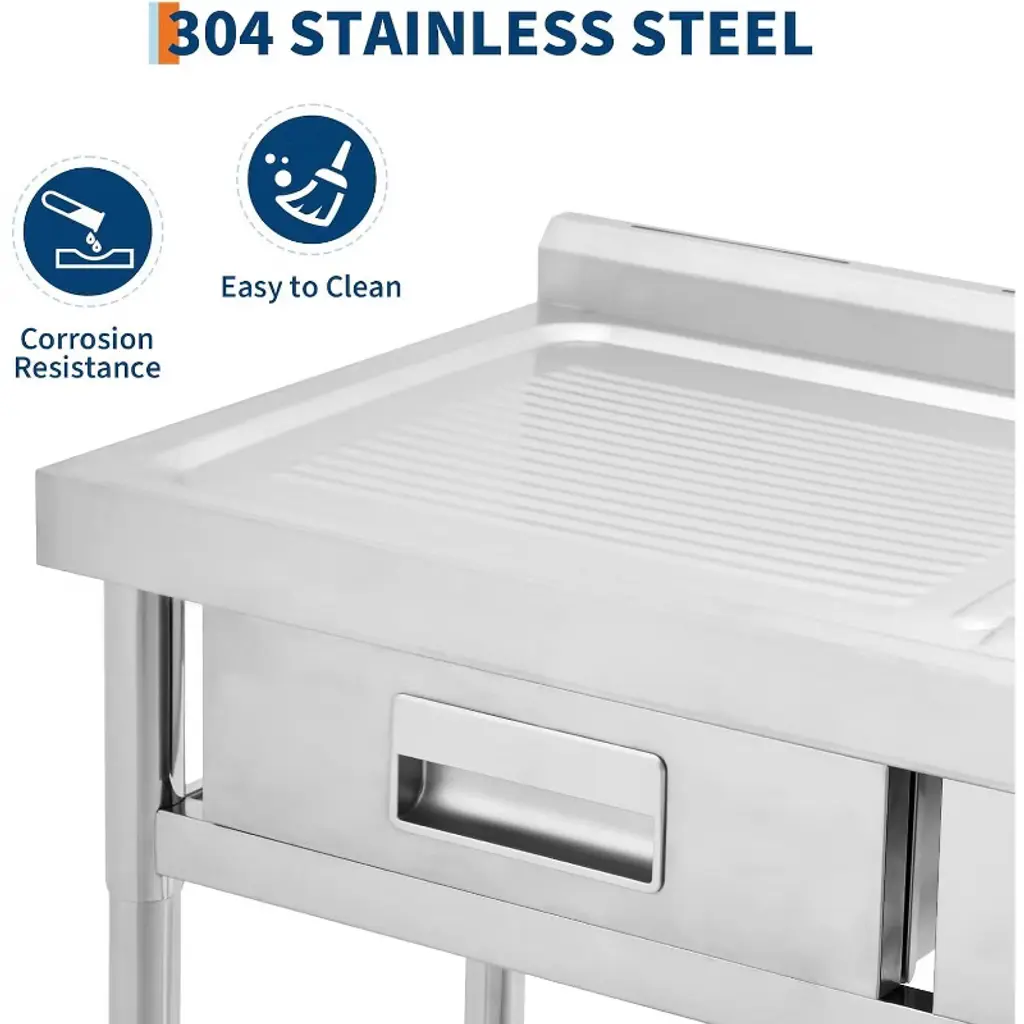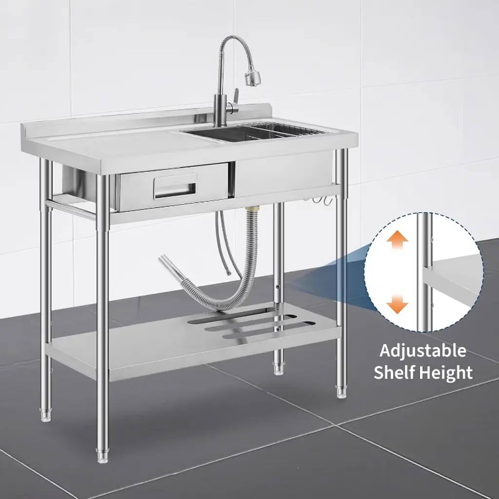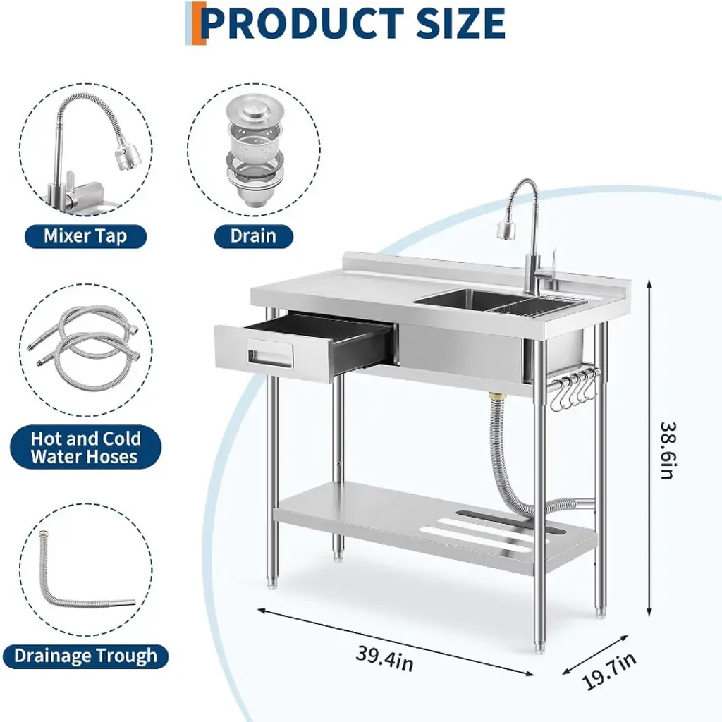 39.4"x19.7"x38.6" Stainless Steel Utility Sink, Freestanding Single Bowl With Drawer, Pull-out Hot & Cold Faucet