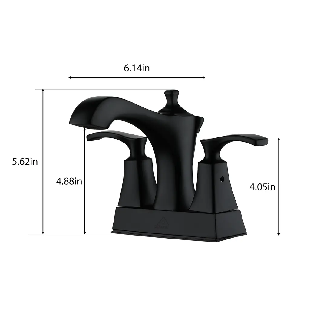 4 In. Center Set Double Handle Bathroom Faucet With Pop-Up Drain In Matte Black - Black