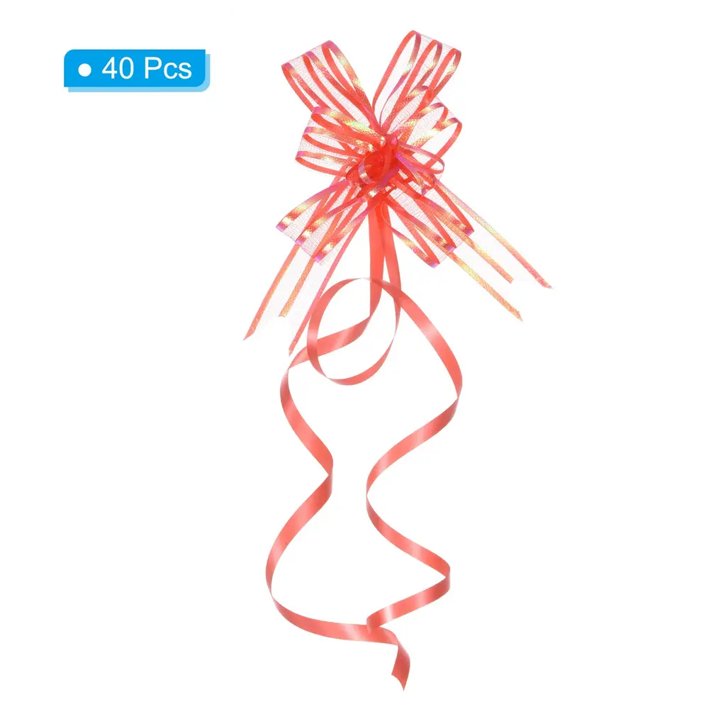 40pcs 2.4" Chiffon Pull Bows Present Wrapping String Bows Ribbon Red - Yellow
