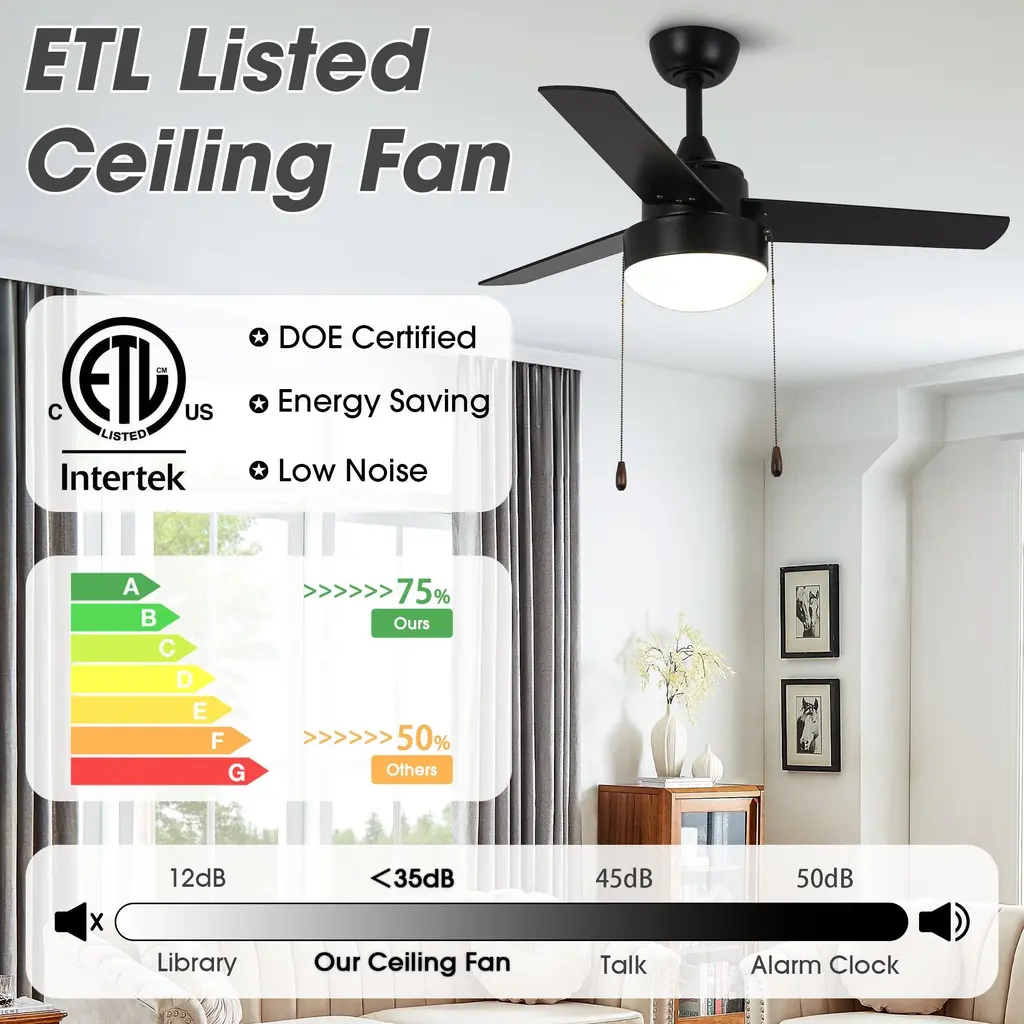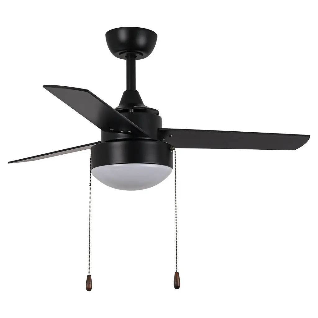 42" Vaczon 3 Blades Traditional Ceiling Fan With Pull Chain - Black