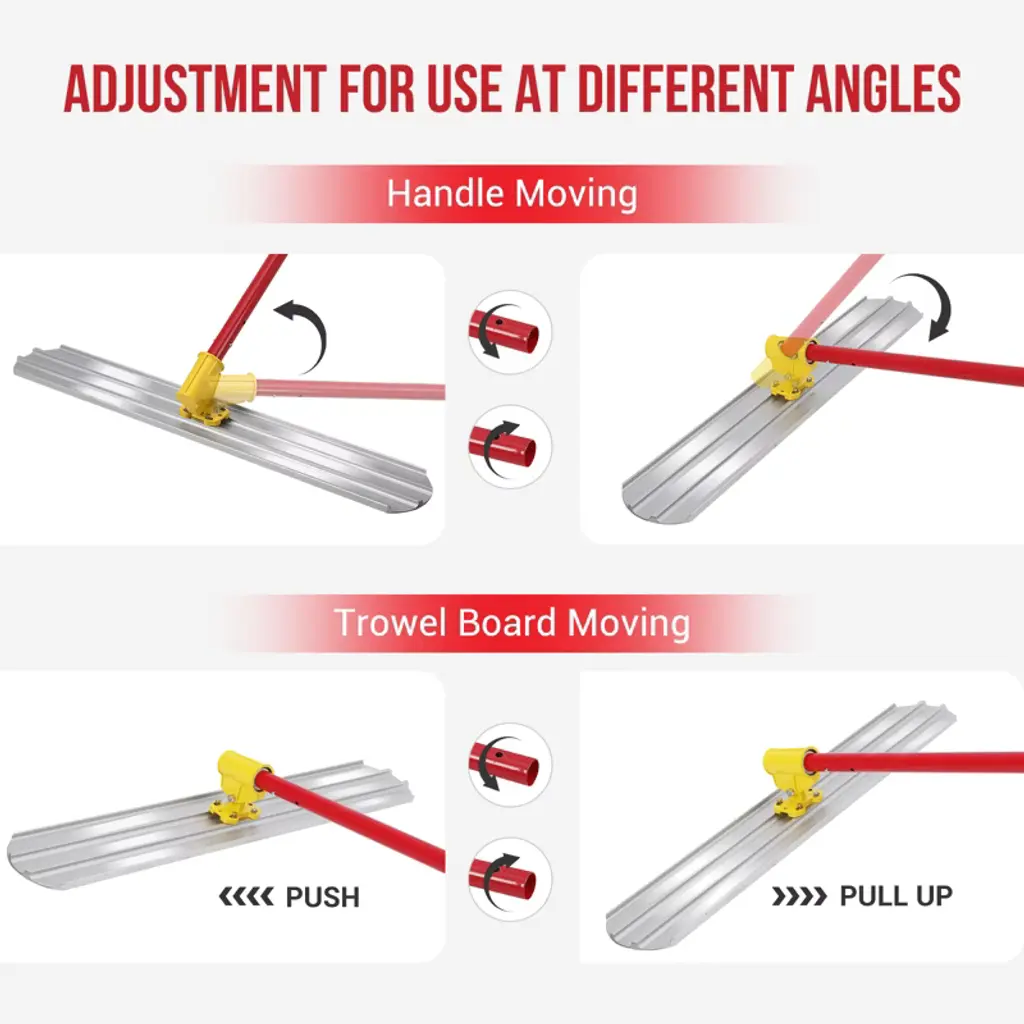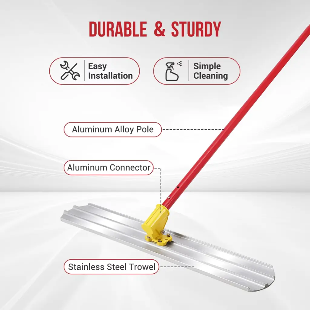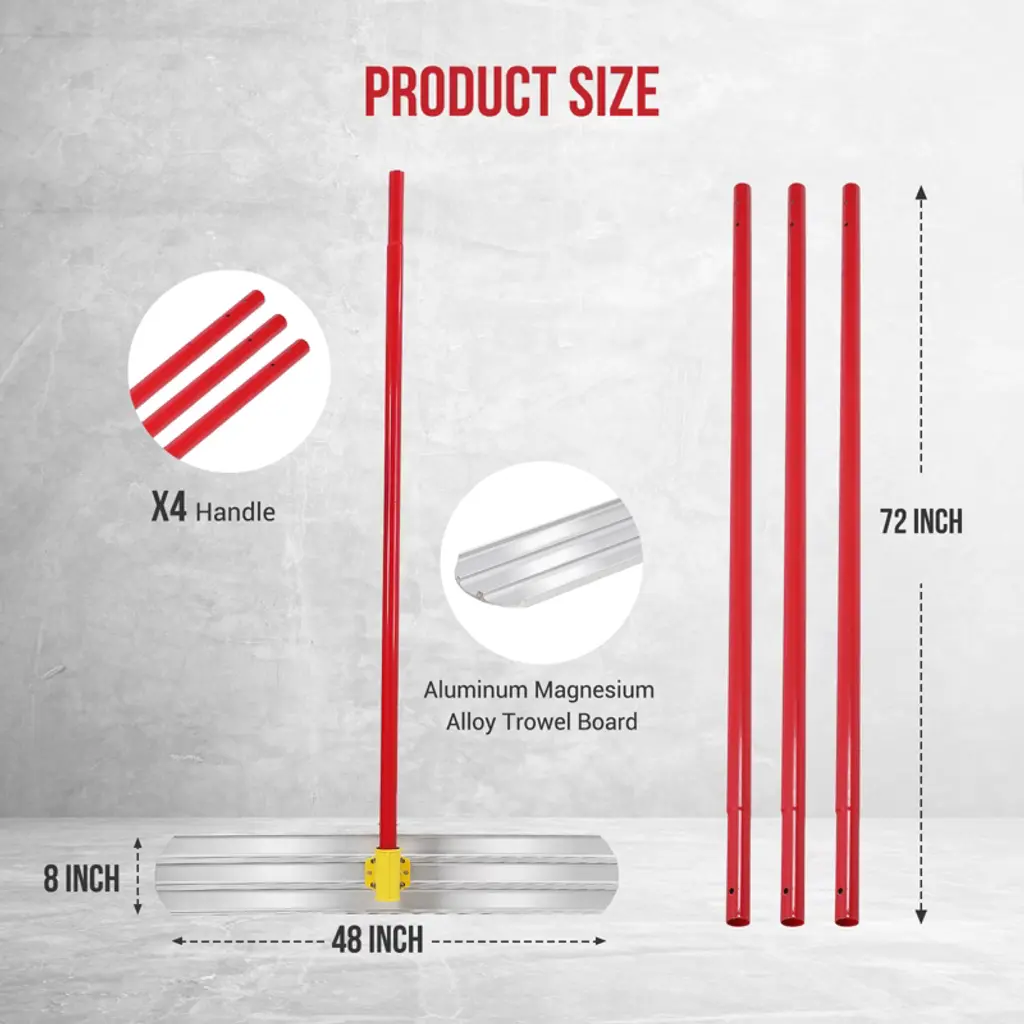 Specification:Material: Aluminum Magnesium AlloyFloat Size: 48 x 8 inHandle Length: 18 ftPacking List:1 x Trowel3 x Handles1 x Bracket1 x Hardware Pack1 x Instruction ManualNote:Please follow the installation instructions step by step. Before starting, make sure you have all the parts you need.Always adhere to the instructions for use to ensure optimal performance and safe operation.Before using the bull float, ensure that all parts (such as brackets and trowel board) are in good condition to ensure safe and effective operation.