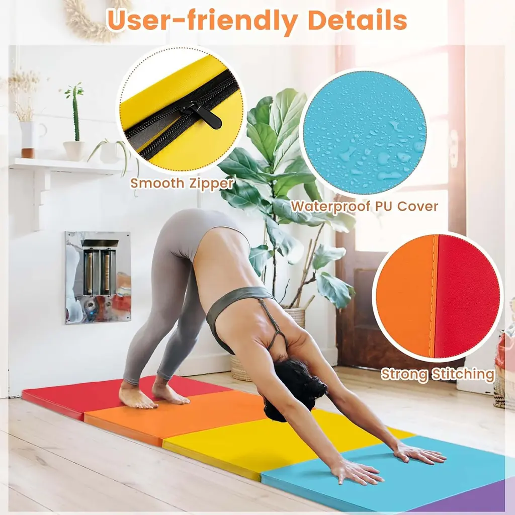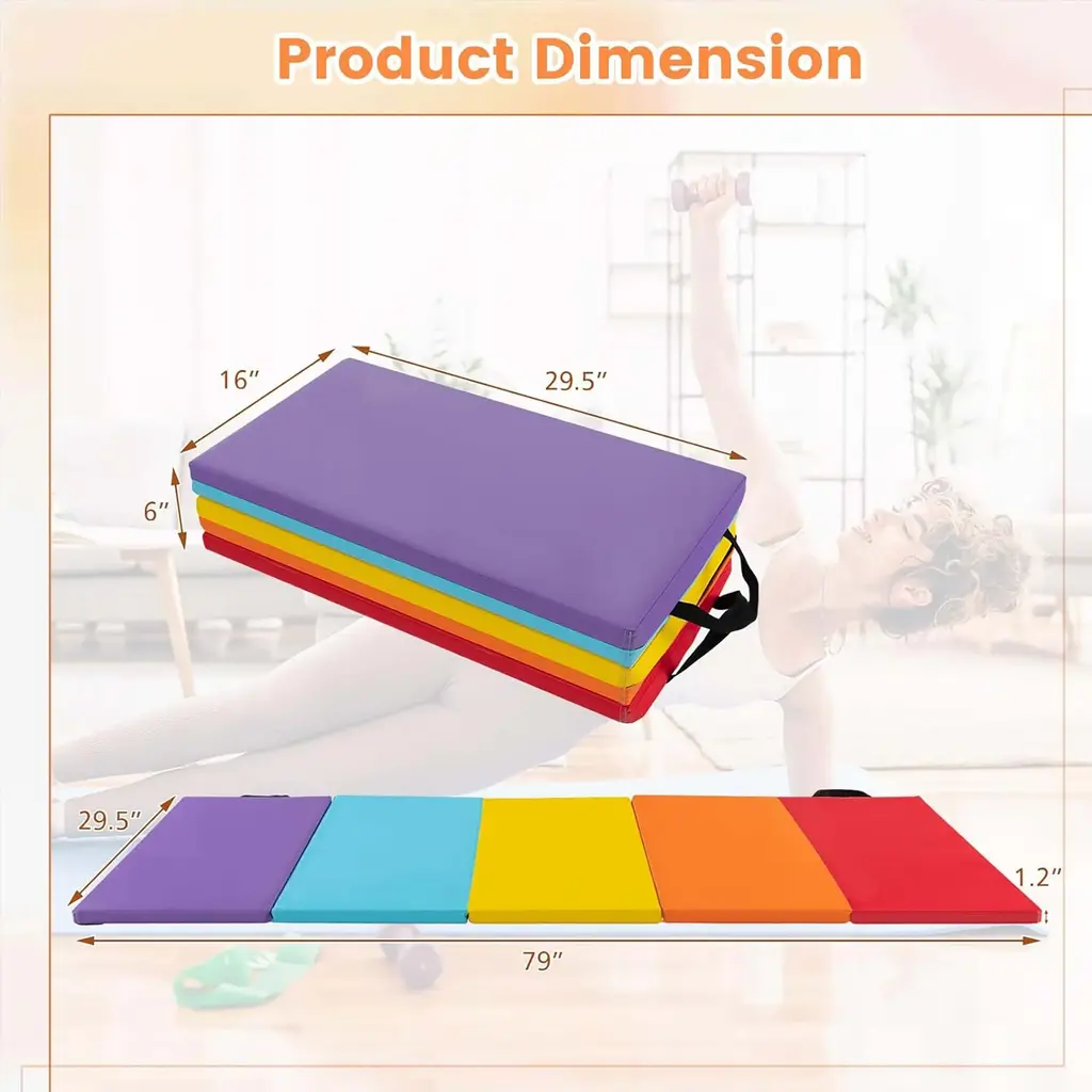 5-Panel Folding Tumbling Mat Gymnastics Mat W/carrying Handles - Multi