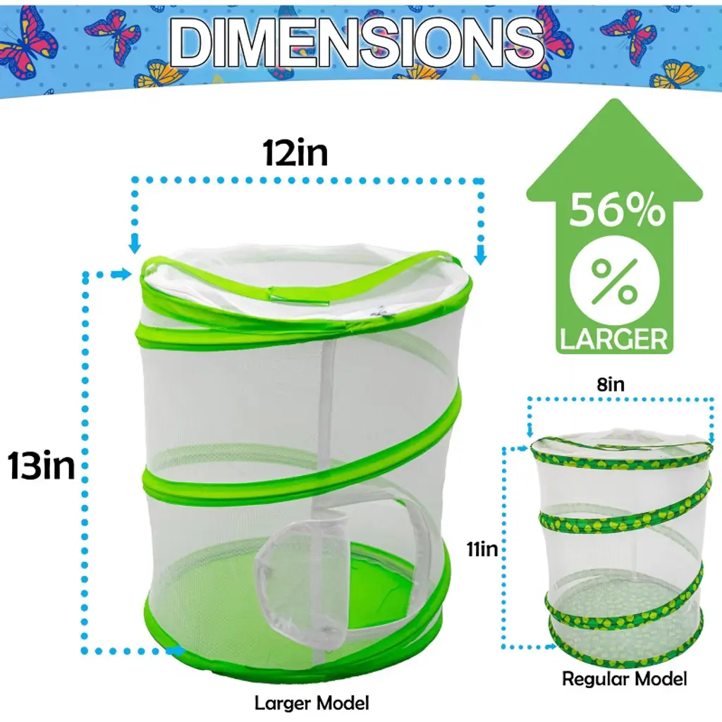 5 Star Super Deals Butterfly Growing Kit – 13" Tall Pop-up Mesh Habitat Cage With Zipper Door, Carry Handle Insect Observation For Kids & Classrooms