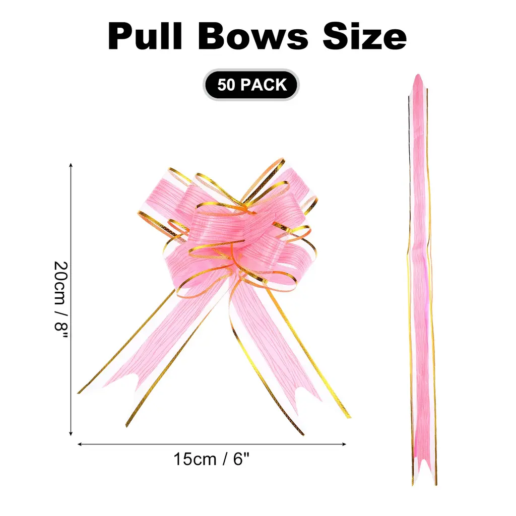 Description1. These large ribbon pull bows are made from waterproof pp material, a good-quality material that is not easy to break and deform, the color of the bow is not easy to fade, and it can be reused for a long time.2. Pull bows for gift wrapping are a great match for the gift and presents, and feature a convenient pull design, allowing you to quickly and easily create a beautiful bow, making your gift box more romantic and aesthetic.3. To use the pull bows, simply hold the two inner strings and pull them apart to create a full and beautiful bow, and then adjust the loops to your desired shape and size, and attach the bow to your gift or decoration with the adhesive backing.4. These versatile pull bows not only can ornament gift box packaging, flower packaging, wedding tables, Christmas presents, and decorating baskets but also can be applied to Christmas, weddings, and more, making your important day full of romantic and fresh atmosphere.5. Avoid pulling the strings too hard, as this can cause the pull bow to become deformation, and keep away from small children, as the ribbons can pose a risk.SpecificationMaterial: PP MaterialColor: WhiteRibbon Size: 76x5cm/29.9x2 inch(L*W)Formed Size: 20x15cm/7.9x5.9 inch(L*W)Package included: 50pcs x pull bows