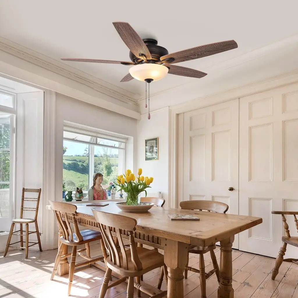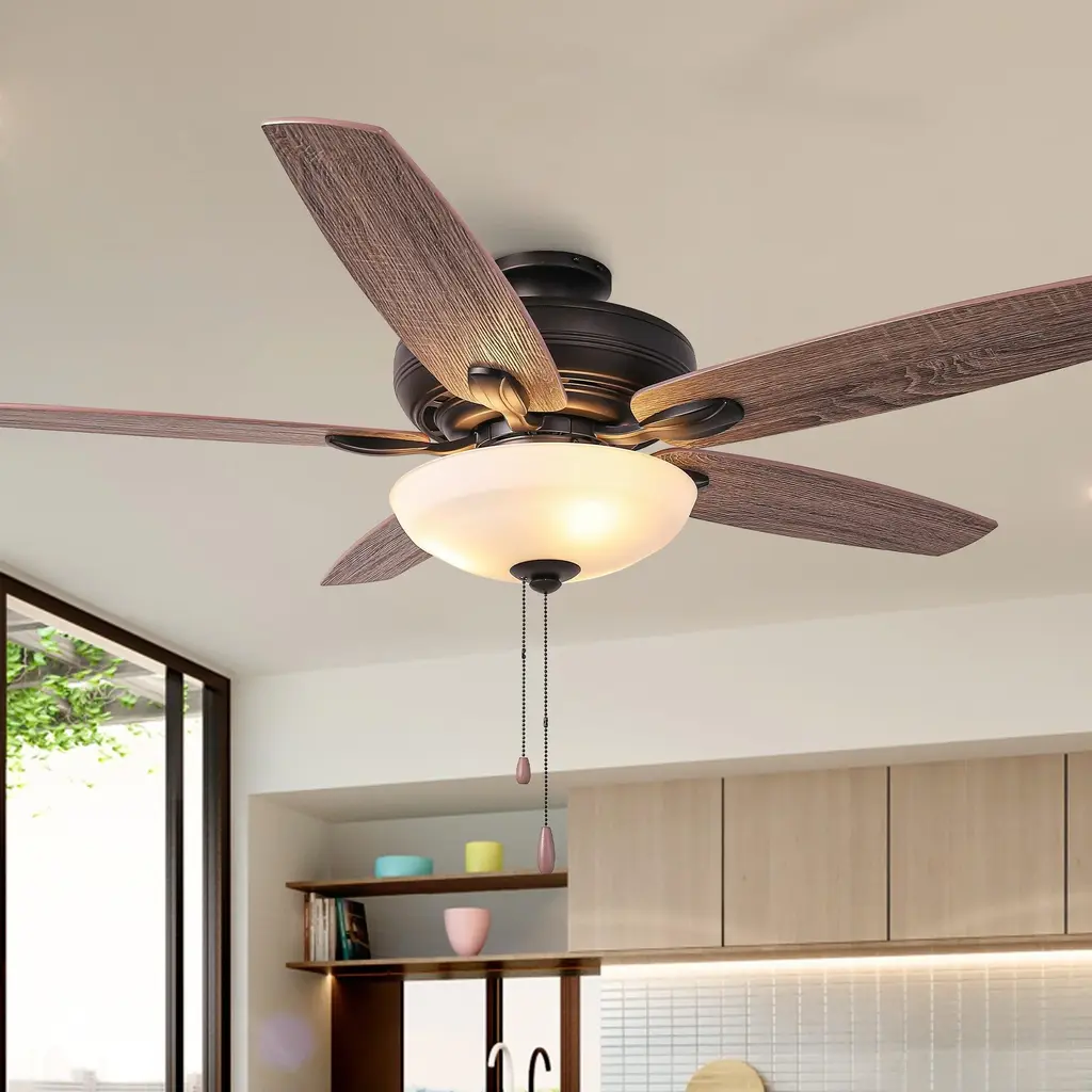 This 52" Traditional Indoor/Outdoor Cord-Pull Ceiling Fan is ideal for adding style and comfort to any indoor or covered outdoor area. It has two types of installation methods, downrod mount and flush mount. Moreover, it features a timeless, simple design with resilient two-tone MDF blades that can be customized to match your decor. The fan's 3-speed reversible motor adds versatility for year-round use. Plus, it's easy to use and simple to operate thanks to the included zipper..