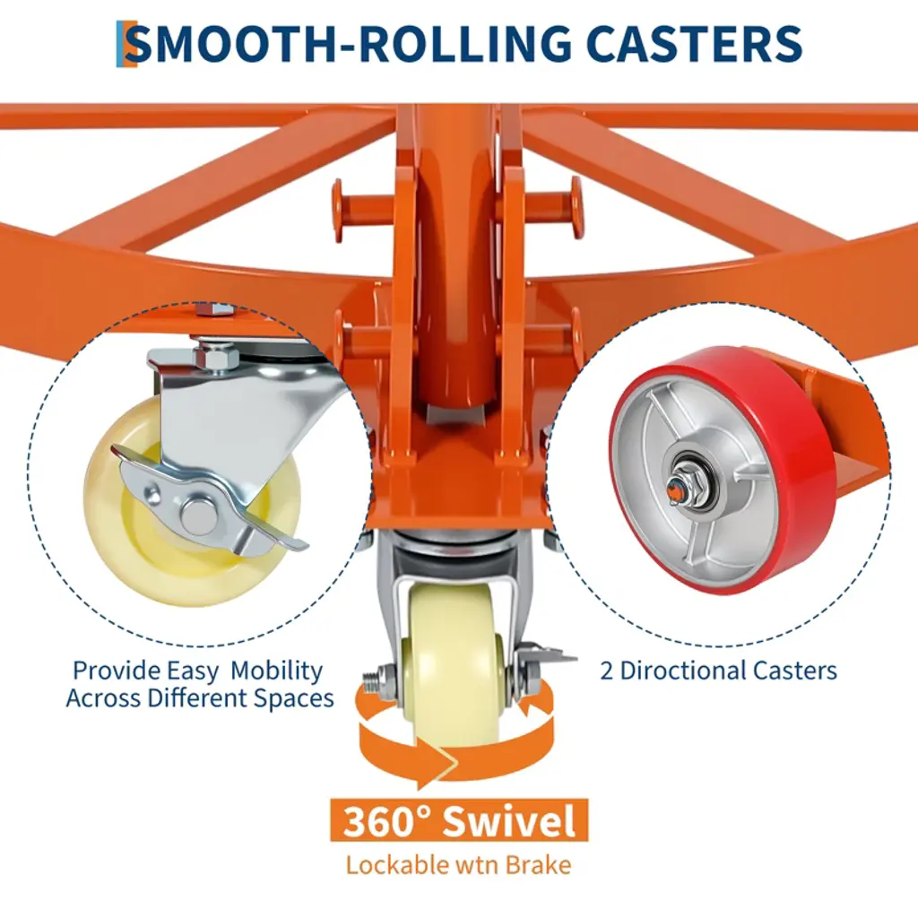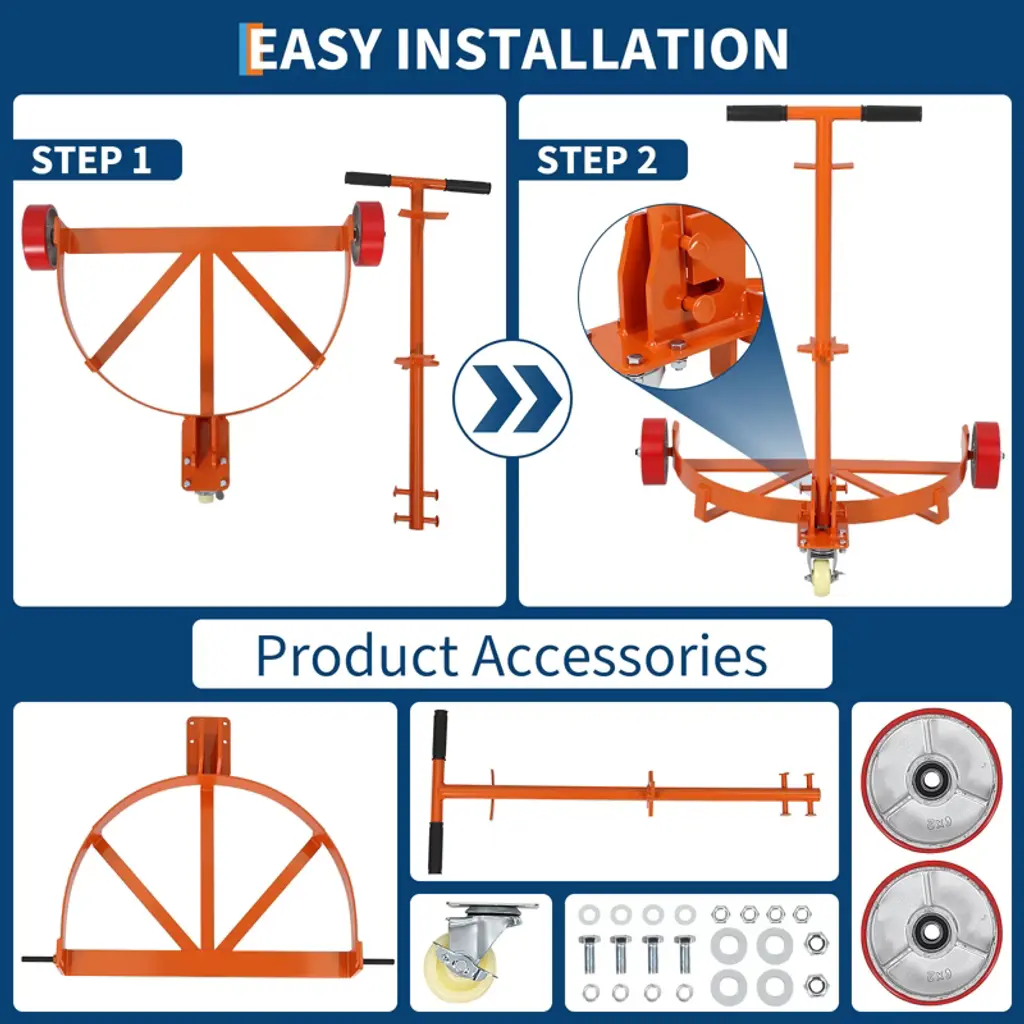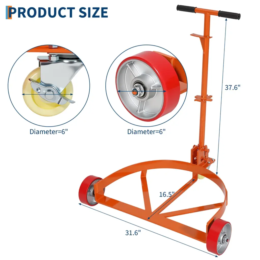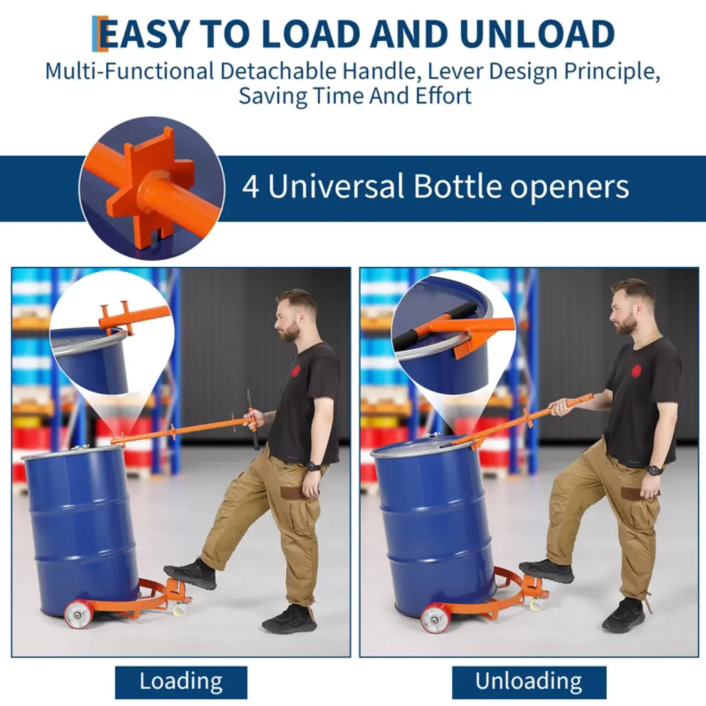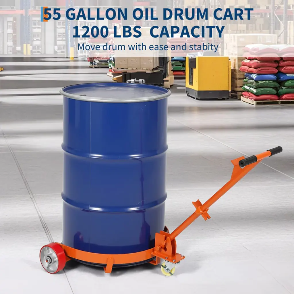 55 Gallon Drum Dolly, 1200 Lbs Load Capacity Drum Cart With Bung Wrench Handle & 3 Wheels, Low Profile Steel Oil Drum Caddy For Garages Warehouse