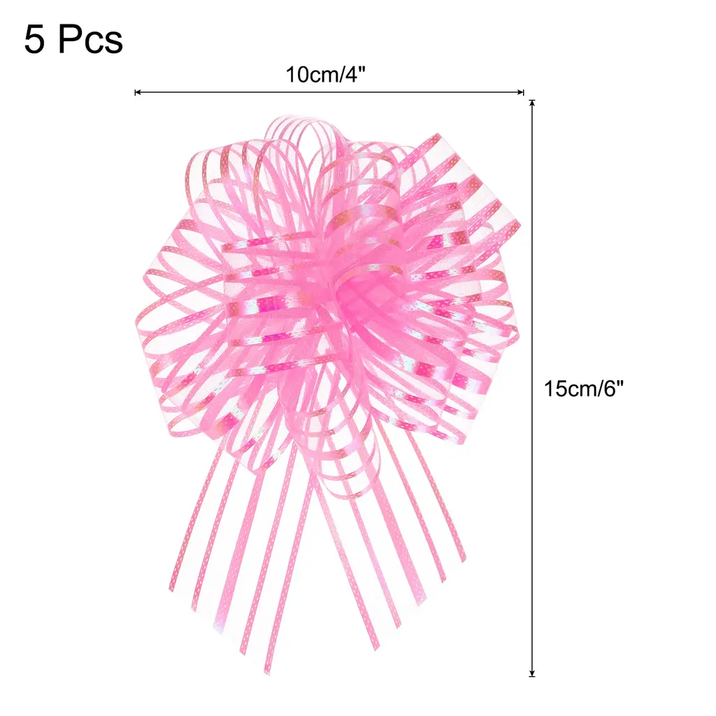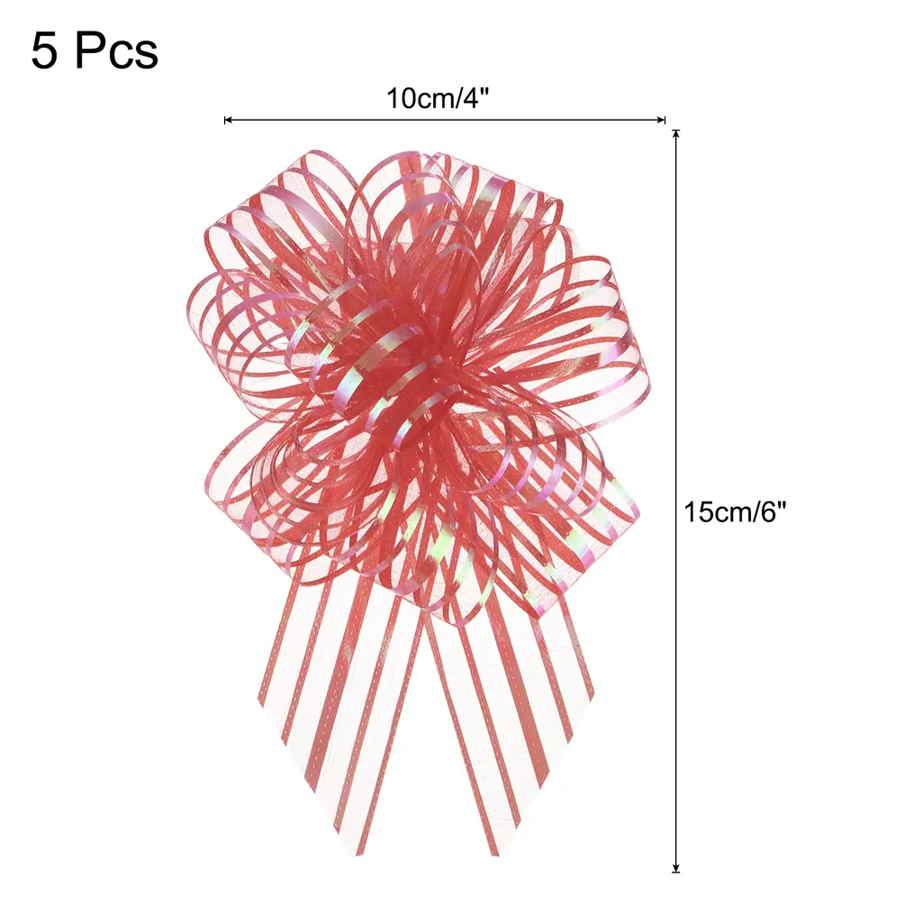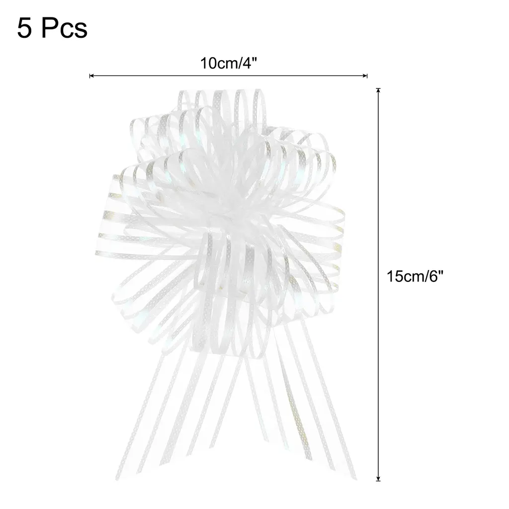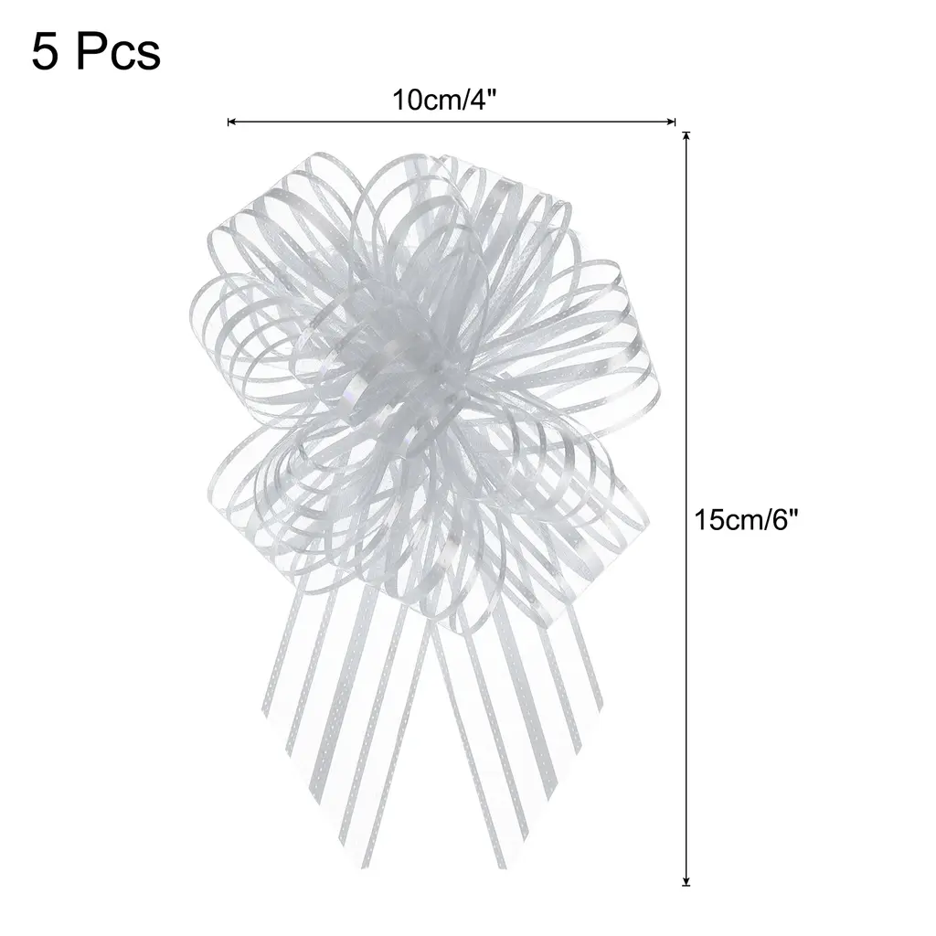 5Pcs 4 Inch Large Pull Bows Gift Wrapping Bows Ribbon Organza - Metallic Silver