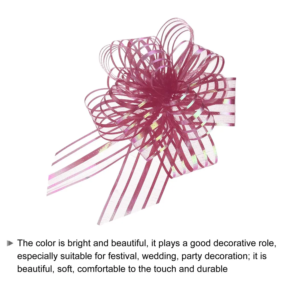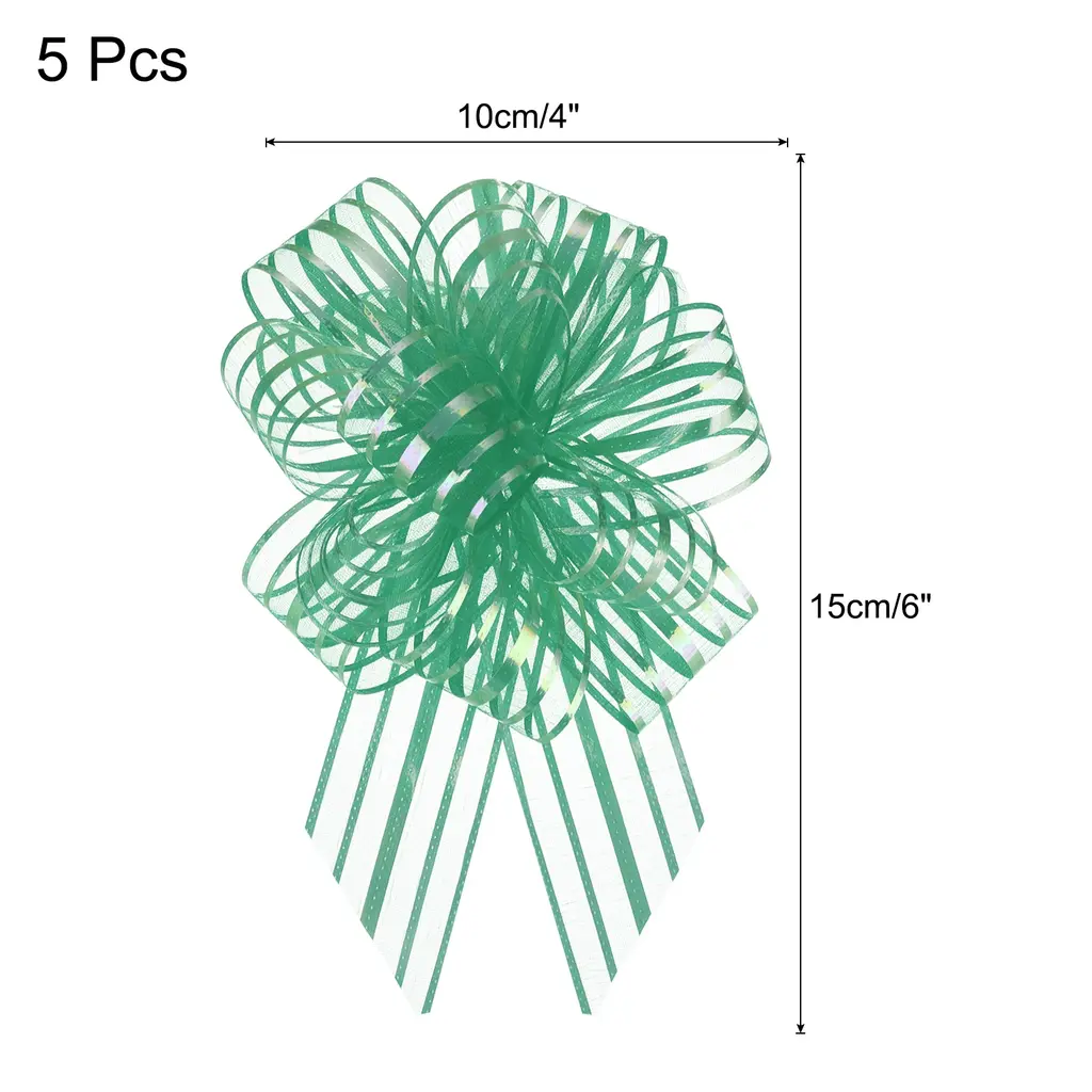 What is this?Bright colored organza chiffon pull bows with ribbons are suitable for gift wrapping bows, present decorating bows, DIY crafts handicraft decoration, gift wrapping packaging, holiday decoration, wedding gift baskets decoration, flower design, party decoration, floral bouquet ribbon, scrapbooking, and can be used to decorate Christmas, Valentine's Day, Halloween, Easter, Thanksgiving, Teacher's Day, Mother's Day, etc.What will I get?Gift Wrapping bows, are in size of : 10cm x 15cm/4-inch x 6-inch(W*L)In the package of: 5pcs x Gift Wrapping bowsIs there any advantages of the product?Bright color, beautiful, which plays a good decorative role, especially suitable for holiday, wedding and party decoration; Beautiful and elegant, soft, comfortable to the touch, and durableHow to use it?Steps of installation: 1. Select gift Wrapping bows with appropriate specification; 2. For gift Wrapping, holiday decorationWhat should I notice?Please pay attention to select the gift Wrapping bows with suitable specifications