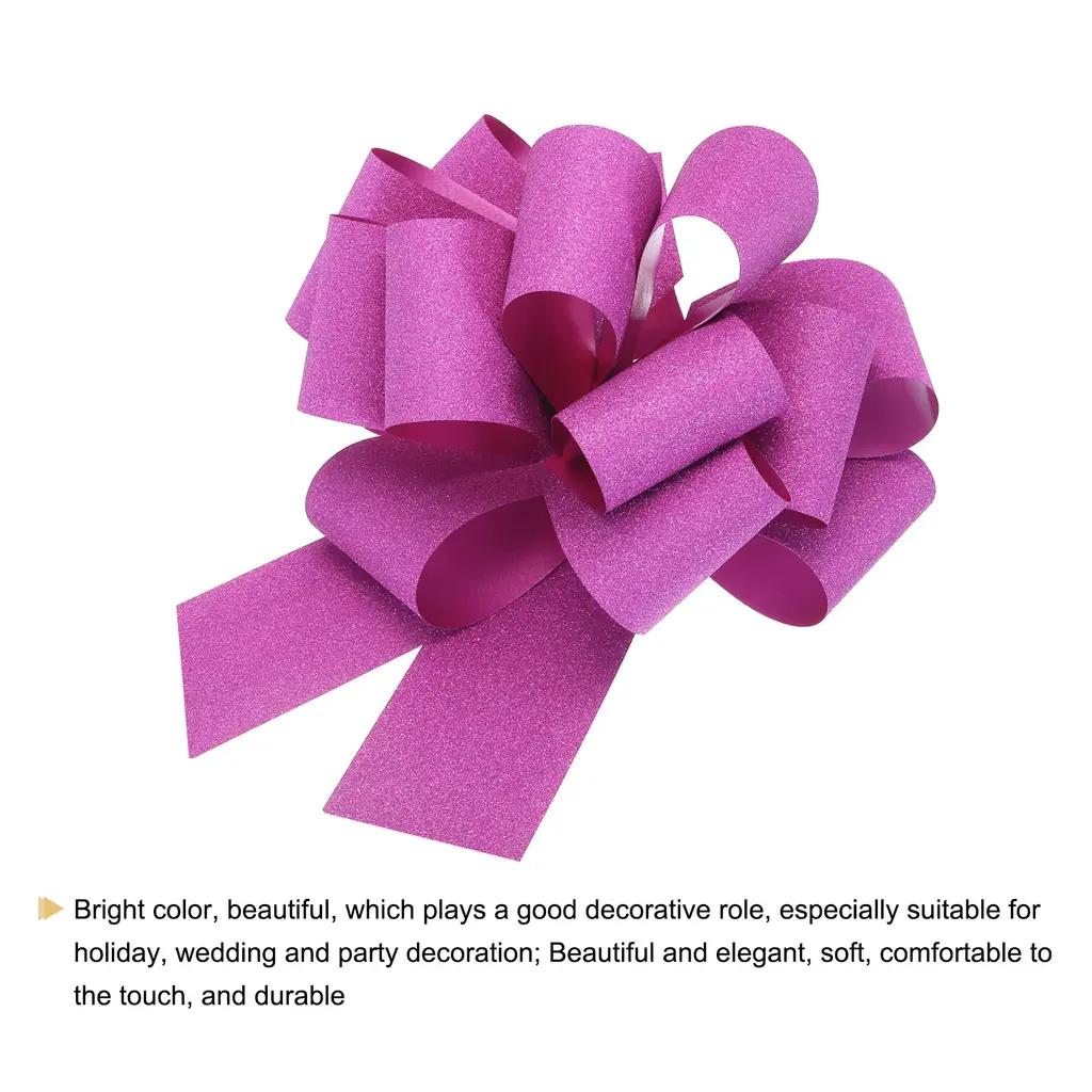 What is this?Personalized sparkly bling bright colored big pull bows with ribbons are suitable for gift wrapping bows, car decoration pull bows, present decorating bows, DIY crafts handicraft decoration, gift wrapping packaging, holiday decoration, wedding gift baskets decoration, flower design, party decoration, floral bouquet ribbon, scrapbooking, and can be used to decorate Christmas, Halloween, Thanksgiving, Teacher's Day, etc.What will I get?Gift wrapping bows, are in size of : 17cm x 32cm/7-inch x 13-inch(W*L)In the package of: 5pcs x Gift wrapping bowsIs there any advantages of the product?Bright color, beautiful, which plays a good decorative role, especially suitable for holiday, wedding and party decoration; Beautiful and elegant, soft, comfortable to the touch, and durableHow to use it?Steps of installation: 1. Select gift wrapping bows with appropriate specification; 2. For gift wrapping, holiday decorationWhat should I notice?Please pay attention to select the gift wrapping bows with suitable specifications